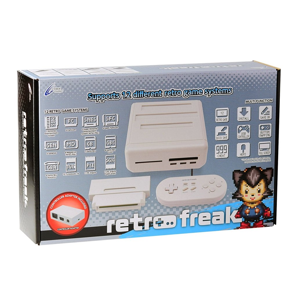 Obwohl ich als Retrosammler fast alle Originalkonsolen bei mir im Einsatz habe, haben diese zugegeben einen gravierenden Nachteil: Sie nehmen einiges an Platz weg und lassen sich nicht ohne weiteres an einem HDTV anschließen. Ich hatte mir daher schon vor einiger Zeit ein Retron 5 zugelegt, was aber aus bislang unerfindlichem Grund die Dienste versagt hat. Da es nun aber mit dieser Konsole eine gibt, die ähnlich wie das Retron funktioniert, aber noch einiges mehr kann, habe ich mir diesmal den Cyber Gadget Retro Freak zugelegt. Die Konsole gab es schon seit knapp 2 Jahren in Asien und nun gibt es auch eine Version für den westlichen Markt, die sich durch eine mehrsprachige Verpackung und einen beigelegten NES-Adapter von der asiatischen Version unterscheidet.