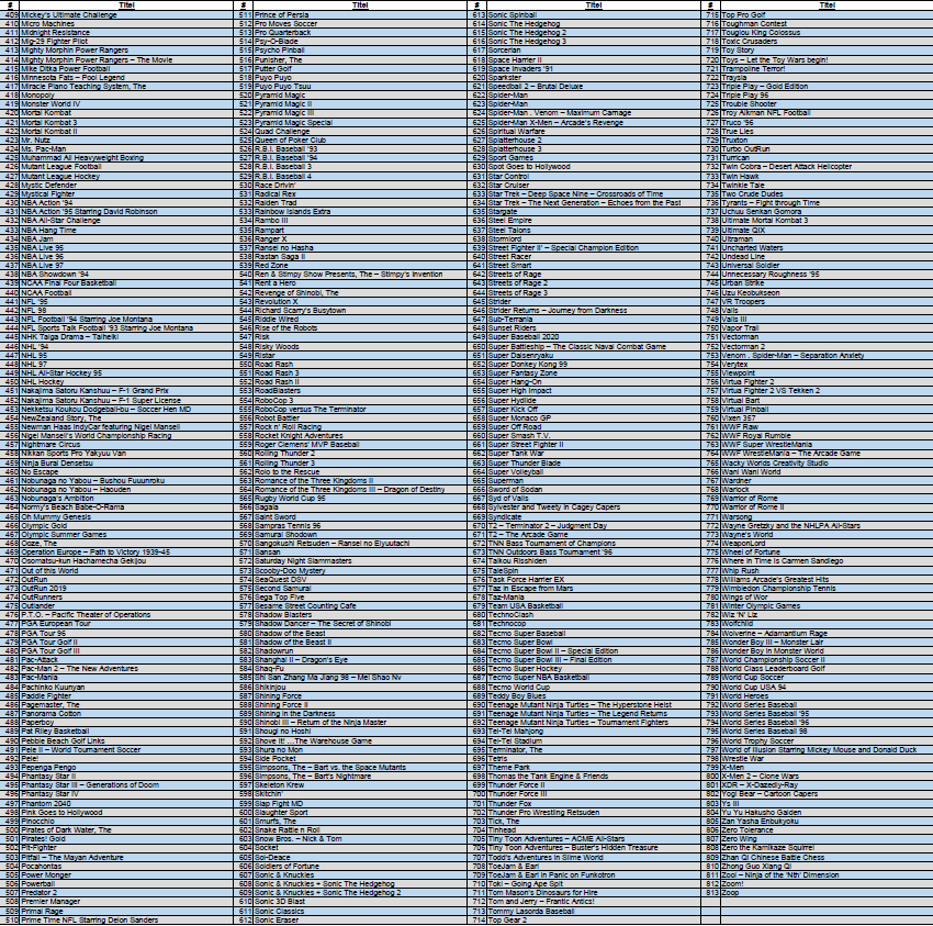Dabei verhält es sich mit der Neuauflage von Sega’s einstigem Flaggschiff ziemlich anders, als mit der PlayStation Classic, denn hierbei wird die Mini-Variante flächendeckend gelobt, was das Aussehen, das Spiele-Lineup und die Performance angeht. Dennoch muss man sich eingestehen, dass wahrscheinlich jeder Fan des kleinen schwarzen Kastens das ein oder andere Spiel im Lineup vermisst und stattdessen auf ein anderes hätte verzichten können. Das ändert das neueste Add-On von True Blue aber grundlegend und liefert einen Stick mit insgesamt über 800 Spielen (813 um genau zu sein) aus, die im Grunde alles abdecken, was es auf der Konsole in ihren unterschiedlichen Länderversionen jemals gab. Die Ausnahmen bilden dabei lediglich Fan-Games, wie „Sonic Megamix“, die man nicht im Lineup findet. Doch abseits davon ist alles vertreten, was Rang und Namen hat, was sich auch in der überaus großen Liste wiederspiegelt: