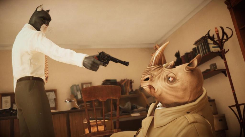 Das Spiel basiert dabei auf den gleichnamigen Graphic Novels von Juanjo Guarnido und Juan Diaz Canales, die ähnlich wie „The Wolf among Us“ eine Detektivgeschichte erzählen. Doch entgegen der Anleihen bei den Gebrüder Grimm und anderen Märchensammlungen erzählt man hier komplett eigene Geschichte in einer alternativen Version von New York der 1950er Jahre, wo anthropomorphe Tiere die handelnden Personen sind. So macht das Spiel bereits zum Beginn einiges richtig, indem es ein frisches und interessantes Setting verwendet und auch gleich zu Beginn deutlich macht, dass es sich trotz der Tiere um kein Kinderspiel handelt. Denn hier wird kein Blatt vor den Mund genommen, was Schimpfworte, Gewalt oder Sexualität angeht, was bereits in der erste Szene verdeutlicht wird, als unser Hauptcharakter, der Titelgebende John Blacksad in eine fiese Schlägerei mit einem Rhinozeros gerät, den er bei einem Seitensprung mit einem Fuchs erwischt hat.