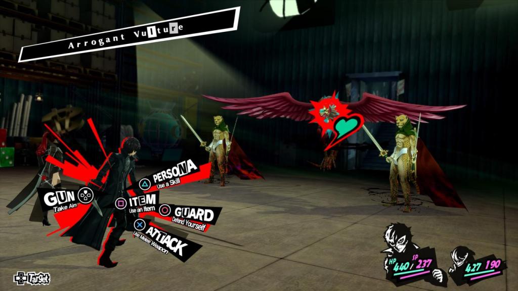 Im Metaverse zeigen sich die Dinge, wie sie wirklich sind und die finsteren wahren Gesichter der korrumpierten Menschen zeigen sich. So ist der eingebildete Sportlehrer der Schule plötzlich ein Tyrann, der anstatt in der Schule in einem riesigen gotischen Schluss residiert. In dieser Welt verwandeln sich die Schüler mit Unterstützung der mächtigen Personas in alternative Persönlichkeiten. Dabei schalten wir im Spielverlauf unterschiedliche Personas frei, die jeweils unterschiedliche Fähigkeiten, Stärken und Schwächen mit sich bringen und daher mit Bedacht ausgerüstet werden müssen. Die Kämpfe laufen dabei in klassischer RPG-Manier rundenbasiert ab und erfordern ein taktisches Vorgehen, da unterschiedliche Angriffe unterschiedliche Hitpoints austeilen, teilweise die Gegner lähmen oder uns zusätzlich erlauben Items einzusetzen, was über Sieg oder Niederlage entscheiden kann, da der Gegner danach ähnliche Optionen zur Verfügung hat. Gerade bei stärkeren Gegner oder Bosse kann das durchaus nervenaufreibend werden…