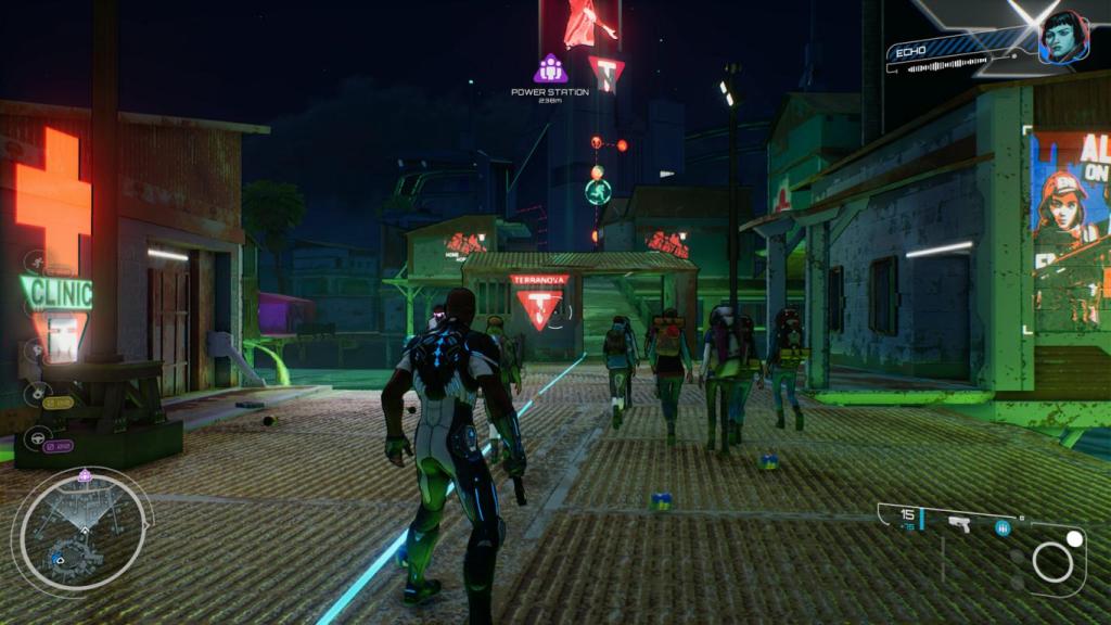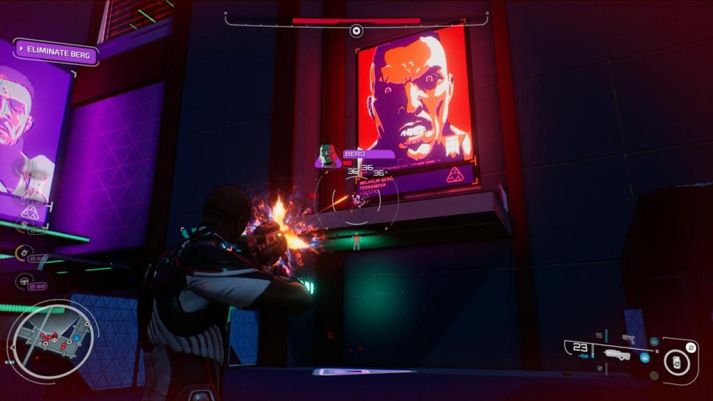 In der Stadt hat sich ein totalitäres System, geleitet vom Unternehmen Terranova etabliert, das mit eiserner Faust regiert. Dabei ist die Stadt in unterschiedliche Bezirke aufgeteilt und bieten unterschiedliche Sektoren der Stadt, die wir angreifen können. Jeder Sektor, (z.B, Sicherheit, Propaganda, Transport, etc.) kommt mit seinen eigenen Missionen, die wir in beliebiger Reihe angehen können und wartet am Ende mit einem Boss auf, wenn wir den Sektor weit genug geschwächt haben. Viel mehr Handlung findet man zugegebenermaßen nicht im Spiel, da hier eindeutig der Fokus eher auf explosive und schnelle Feuergefechte, anstatt inhaltlichen Tiefgang gelegt wurde, was aber interessanterweise auch gar nicht negativ aufstößt. Denn abseits davon macht die Kampagne einfach zu viel Spaß, auch wenn die Missionen sich repetitiv sind und die Spielwelt an sich auch im Vergleich zu anderen Open Word-Spielen schon fast winzig wirkt. Aber das Spielgefühl reißt das Ruder immer wieder herum, denn die immense Geschwindigkeit, die stellenweise an klassische Shooter-Reihen, wie Doom oder auch Quake erinnern, machen einfach Spaß. Wir kommen irgendwo hin, werden mit Horden von Gegnern konfrontiert und Kämpfen als ob es kein Morgen gäbe.