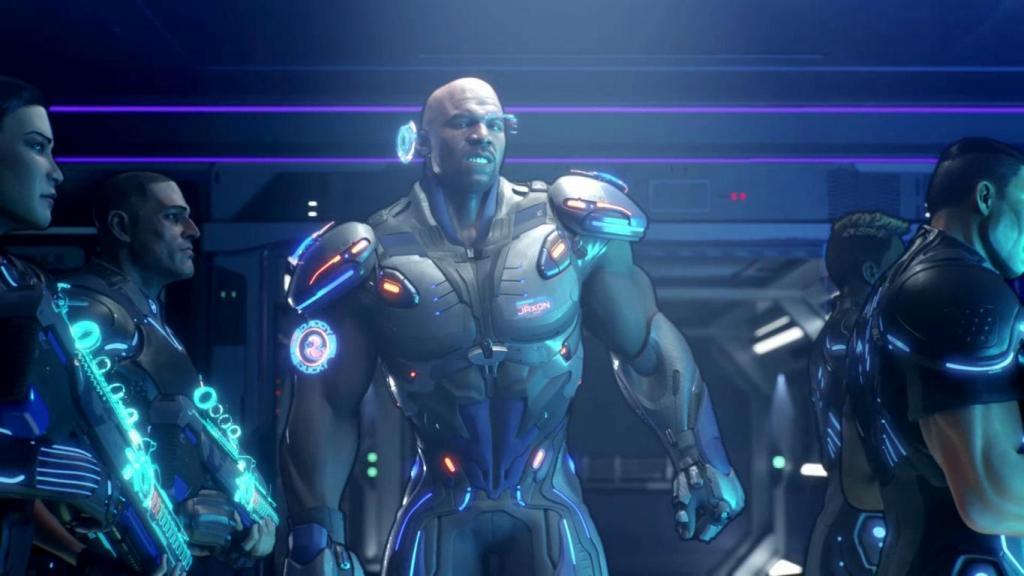 Im Zentrum der Geschichte steht eine Truppe von Superhelden-Cops im Auftrag der „Agency“ unter Leitung des charismatischen Commander Jaxon, der von Crews verkörpert und gesprochen wird. Zwar können wir wahlweise zum Spielen auch andere Charaktere auswählen, doch wenn man die Wahl hat Terry Crews zu spielen, sollte man das meiner Meinung nach auch tun. Die Gruppe wird losgeschickt üble Machenschaften in der fiktiven Stadt New Providence zu untersuchen und gerät direkt bei ihrem Eintreffen und massiven Beschuss, was zum Ableben von Jaxon führt. Doch die Gentechnik ist bereits so weit fortgeschritten, dass er wieder zum Leben erweckt werden kann. Leider trifft das aber nicht auf seine Fähigkeiten zu, denn ähnlich wie bei „Castlevania – Symphony of the Night“, wo wir am Anfang auch mit einem übermächtigen Alucard konfrontiert werden, hat Jaxon nicht nur einen Großteil seiner Muskelmasse eingebüßt, sondern auch seine Fähigkeiten und Waffen müssen wir erst wieder freischalten. Sonst wäre das Spiel wahrscheinlich auch zu einfach geworden.