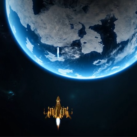 Grafisch kann man sagen, macht das Spiel nicht viel falsch. Der Hintergrund ist wie eingangs erwähnt nett anzusehen und bietet eine Handvoll verschiedener Planeten, die in Ruhe von oben nach unten vorbeiziehen und etwas Farbe in die Kulisse bringen. Man befindet sich nun mal im Weltall, da gibt es halt auch nicht viel mehr. Raumschiffe und Explosionen sind schön animiert, aber auch nicht vom Hocker holend. Kleiner netter Effekt: Man kann mehrere Treffer einstecken und unser Flieger fängt dann an zu brennen. Je mehr Treffer desto mehr Feuer (Im Weltraum! Aber trotzdem eine nette visuelle Idee), bevor er dann ganz explodiert. Über den 3D-Effekt (stereoskopisch) reden wir mal lieber erst gar nicht. Schaltet ihn einfach ab, wenn ihr keine Kopfschmerzen bekommen wollt.