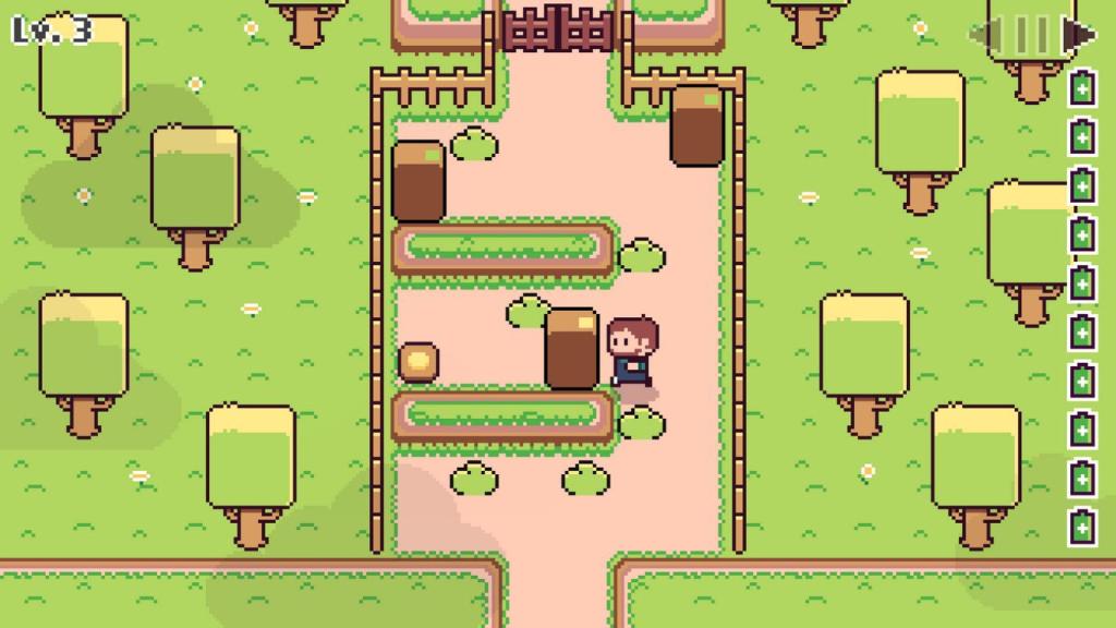 Dabei ändert sich im Spielverlauf nichts und die einzige wirkliche Variation ist die Anzahl der Boxen und die Positionen von Schaltern und sonstiger Level-Architektur unterscheiden. Doch das kann man dem Spiel an sich auch gar nicht angreifen, denn hier ist eindeutig der Weg das Ziel und die Levels an sich machen wirklich Spaß, auch wenn sie dabei ein paar wirkliche Kopfnüsse bereit. Denn es sieht ganz so aus, als ob die Boxen sehr schwer wären und unser Charaktere, bei dem wir wahlweise zwischen einem Jungen oder einem Mädchen wählen können, hat nur begrenzte Fähigkeiten die Boxen zu bewegen. Wir sehen das Geschehen dabei von schräg oben und können unseren Charakter und die Boxen jeweils vertikal und horizontal verschieben. Dabei müssen wir aufpassen, dass wir die Box nicht in eine Sackgasse bringen, denn wir können die Boxen ausschließlich schieben und wenn wir sie nicht mehr bewegen können, da wir uns zum Beispiel nicht mehr dahinter stellen können, ist das Level nicht mehr lösbar.