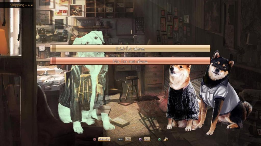 Wie man es von Visual Novels kennt bestimmt der Spieler selbst den Fortgang der Geschichte durch seine Entscheidungen. Innerhalb der Dialoge gibt es immer wieder Unterbrechungen, wo wir aus unterschiedlichen Möglichkeiten auswählen können, die die Geschichte in eine andere Richtung lenken, oder sogar das Ende beeinflussen. So gibt es drei teilweise sehr unterschiedliche Enden und eine Vielzahl von unterschiedlichen Verläufen innerhalb der Geschichte, je nachdem mit wem wir uns anfreunden und wie wir die Hunde insgesamt behandeln, die wie treffen.