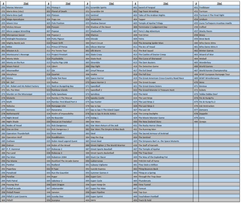 Und hier kommt noch der zweite Teil des Lineups mit den Spielen 251-480: