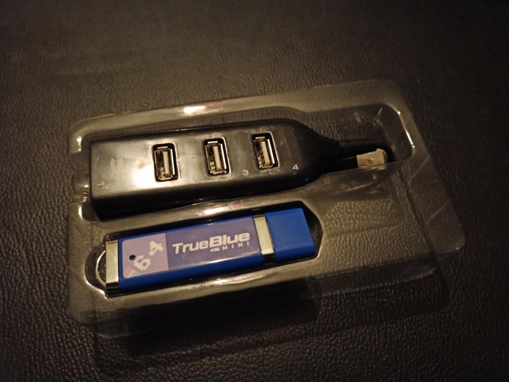 Doch was bekommt man überhaupt für sein Geld? – Im Paket findet man einen recht unscheinbaren USB-Stick mit der Aufschrift „C64“ und einen USB-Mehrfachstecker, damit man trotz der Verwendung des Sticks auch zwei Controller für die 2-Spieler-Spiele verwenden kann. Der Stick an sich macht einen hochwertigen Eindruck, ist mit einem Aufkleber mit Paketbezeichnung versehen, hat eine LED, die den Zugriff anzeigt und verfügt über eine Schutzkappe, damit kein Staub an die Kontakte kommt, wenn man den Stick nicht benutzt. In der Box befindet sich neben dem USB-Stick noch der erwähnte Mehrfachadapter. Der Adapter macht auf Grund von ganz billigem Plastik und unsauberer Verarbeitung an allen Ecken und Übergängen, funktioniert aber dennoch.
