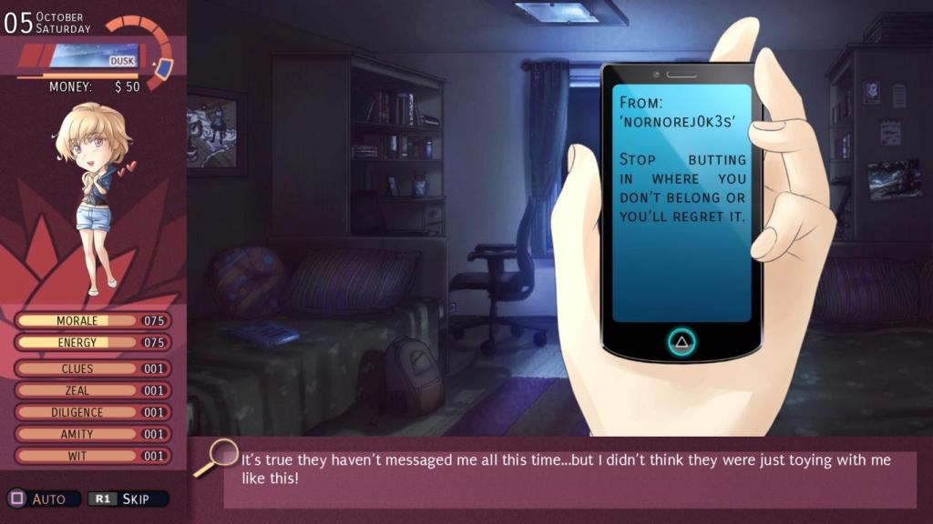 Die Handlung an sich ist gut geschrieben und fängt das Erlebnis an einer amerikanischen Hochschule gut ein und man könnte den allgemeinen Ton der Geschichte durch die Kombination von Liebesgeschichte und Mystery fast als „Dawson’s Creek“ meets „Fringe“ bezeichnen, wobei man aber auf grafische Elemente, wie Blut oder Nacktheit verzichtet und selbst die ernsten Elemente der Handlung eher auf einer eher unschuldigen Ebene belässt. Der Fokus der Gameplay-Seite liegt, wie bei allen Visual Novels auf Dialogen, die stellenweise recht ausufernde Züge annehmen, aber insgesamt gut geschrieben sind, obgleich sie leider nicht vertont sind.