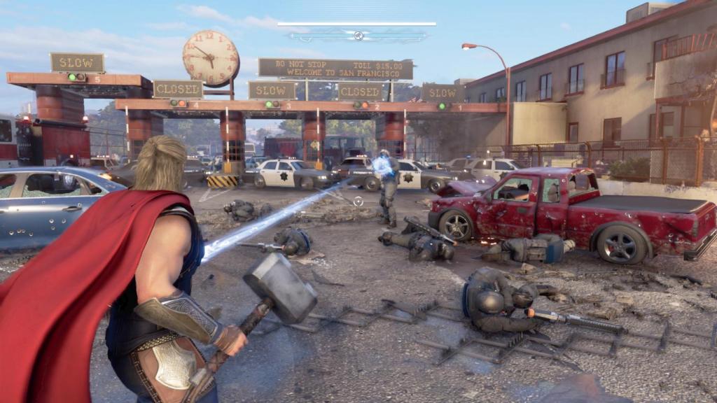 Gerade diese eher restriktiven Story-Happen sind bombastisch inszeniert und warten mit einigen wirklich schicken Setpieces auf, auch wenn das natürlich mit einer Beschränkung in der Bewegungsfreiheit daher geht. Und gerade die Bossfights, wie Hulk gegen seinen Erzfeind Abomination, den man in der Beta spielen darf, sind phantastisch anzusehen. Dass es allerdings auch anders geht offenbart die nächste Mission, auf die wir innerhalb der Beta zugreifen können. Auch wenn sie auch als Story-Mission klassifiziert ist, so spielt sie sich grundlegend anders und offener. Weiter fungiert diese Mission, die uns in die Tundra Russlands in eine alte S.H.I.E.L.D.-Einrichtung führt, als auch Einführung in die Multiplayer-Komponente.