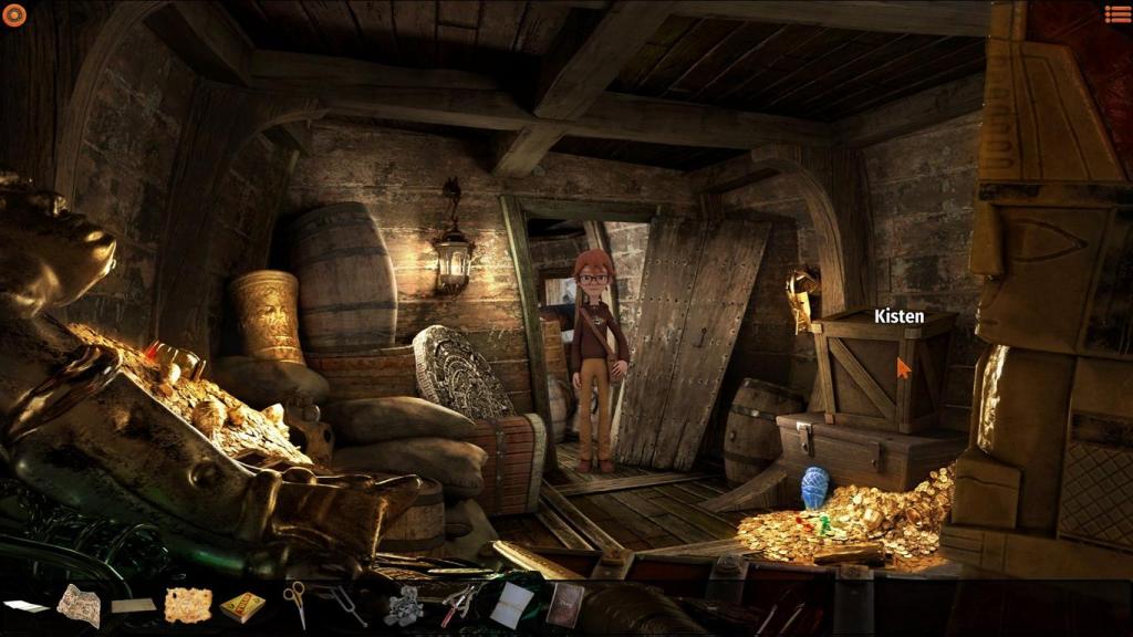 Die erste Hürde ist dann im ersten Kapitel einen Weg zu finden, wie wir nach Bone Town kommen. Dazu bietet sich generell Willy’s altes Fahrrad an, würden nicht nur etliche Teile fehlen. Wir machen uns also mit einer Liste an fehlenden Teilen auf die Suche durch Willy’s Haus, wo alle Teile teilweise, teilweise weniger gut versteckt sind. Wir steuern Willy in bewährter Point and Click-Manier durch unterschiedliche Räume, die mit sehr viel Liebe zum Detail erstellt wurden. Das Spiel verwendet dabei einen interessanten 3D-Cartoon-Look in HD und verfügt einen wirklich stimmungsvollen Soundtrack und professionelle Vertonung in englischer Sprache und deutschen Untertiteln, von denen beides nun im gesamten Spiel zur Verfügung steht.