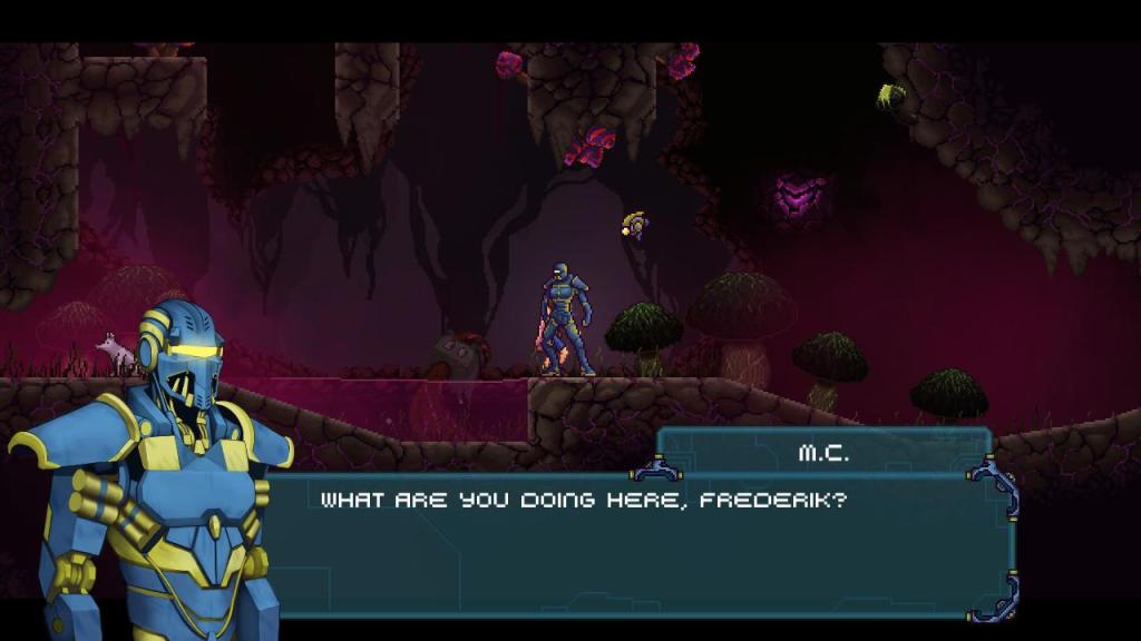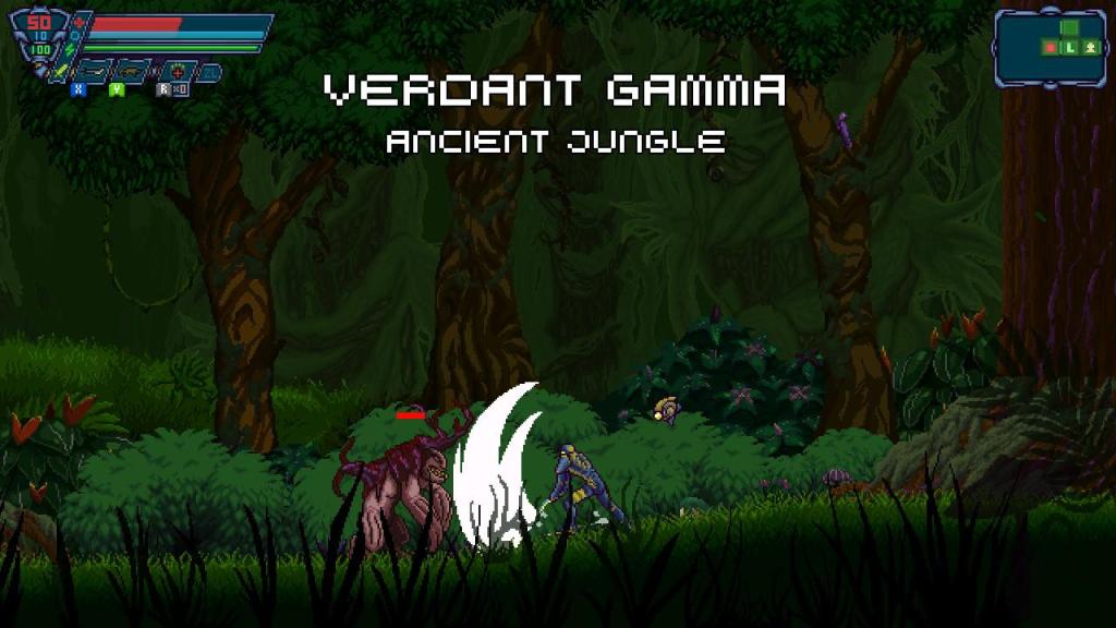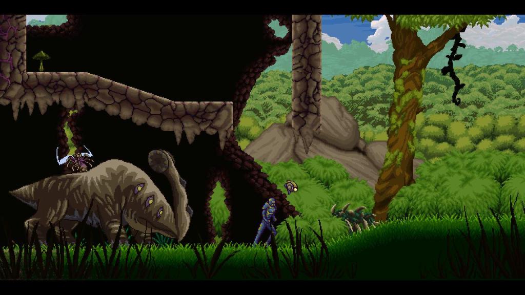 Von der technischen Seite ist das Spiel wirklich gelungen und reproduziert sowohl Look und Feel der klassischen 16- und 32-Bit Metroidvanias und dabei allen voran natürlich, wie bereits erwähnt, „Metroid“. Die schicke Pixelgrafik wartet aber dennoch mit vielen kleinen Details, leuchtenden Farben und einiges an Abwechslung auf, auch wenn es schade ist, dass die besonders schicken Areale erst sehr viel später im Spiel auftauchen. Die Steuerung ist trotz der unterschiedlichen Fähigkeiten und der teilweise fordernden Kämpfe und Plattformer-Abschnitte leichtgängig und steuert sich sowohl mit dem Pro-Controller, wie auch den Joycons gut, was wahrhaftig keine Selbstverständlichkeit ist, da gerade die Joycons meiner Meinung nach für die meisten schnellen Spiele nur minder geeignet und zu schwammig sind. Hier hatte ich aber keine Probleme und das Spiel ist so auch im Handheld-Modus gut spielbar.