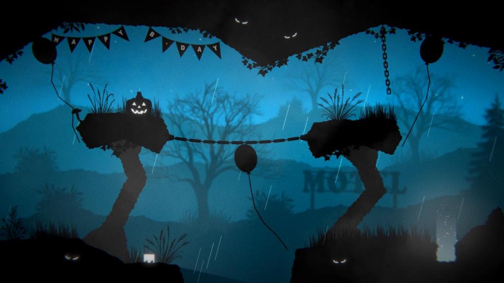 Im Intro des Spiels sind wir bei der Titelgebenden Geburtstagsfeier von Midnight, dem kleinen Viereck aus den Vorgängern, dabei, der mit seinen Eltern feiert. Doch dann öffnet sich plötzlich die Erde und Midnight stürzt hinein und es ist an uns als Spieler, ihn wieder mit seinen Eltern zu vereinen. – Ja, zugegeben die Story ist nicht wirklich die Stärke des Spiels, aber ist immerhin schön, dass man sogar eine Rechtfertigung gefunden hat, uns in eine Reihe von Levels zu schicken, was bei einigen ähnlich-gelagerten Spielen nicht der Fall ist. Von dort an puzzeln wir uns durch insgesamt mehr als 70 gruselige Levels, die mit ihrer Halloween-Thematik auch gerade gut in die Jahreszeit passen…