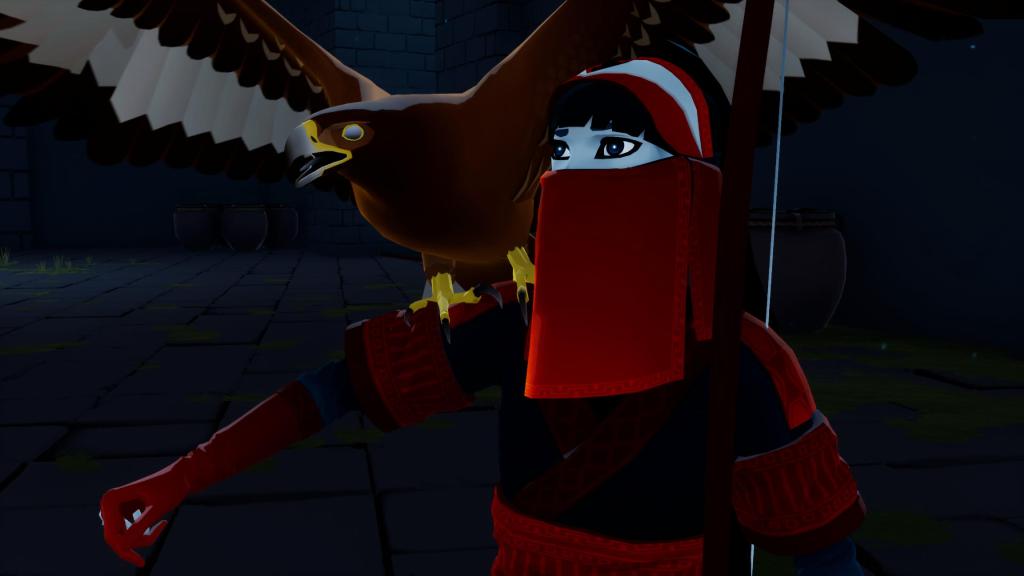 Nach kurzer Zeit freunden wir uns mit einem verwundeten Adler an, der von dort an nicht nur unser treuer Begleiter ist, sondern auch unseren verlängerten Arm darstellt, wenn es um die Lösung von Rätseln gibt. So können ihm per Knopfdruck Anweisungen geben schwere Dinge für uns zu tragen und an einen bestimmten Platz zu bringen, oder ihn zum Gleiten verwenden, wie es Link mit dem Tuch macht.