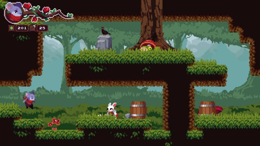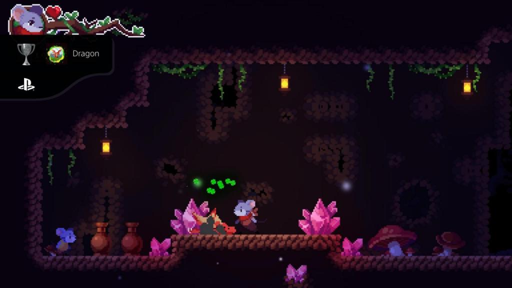 Allerdings muss man sich aber eingestehen, dass es auch ein paar nicht so schöne Punkte gibt: So ist die Spielwelt eher klein und recycelt eigene Elemente immer wieder, was besonders beim ersten größeren Areal, einem Höhlensystem, ins Auge springt. Weiter muss man sich im Klaren sein, dass ein Metroidvania immer ein gewisses Maß an Backtracking mit sich bringt. Aber wenigstens gibt es eine gute Karte, über die man recht schnell sieht, wo es unter Umständen weitergeht. Nervig fand ich an der Stelle aber, dass man nach einem Bosskampf, wenn man eine Maus befreit hat, den kompletten Weg zum Dorf der Mäuse zurück laufen muss, um ein neues Upgrade zu bekommen und die Story fortzusetzen. Andere Spiele, sie die Shantae-Reihe transportieren und immerhin wieder einen Teil des Weges aus dem Dungeon heraus, aber hier gibt es sowas nicht. Da ist es leichter sich nach dem Boss einfach vom nächstbesten Gegner plattmachen zu lassen, denn dann findet man sich mit voller Energie im Dorf wieder…