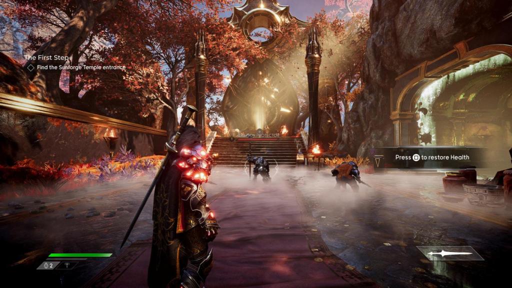 Ein Looter steht und fällt selbstverständlich mit dem Loot, denn wenn es sich zu 99% um unnützen Kram, oder unterlevelten Quatsch handelt, hört man irgendwann auf gefallene Gegner wirklich noch zu looten, oder auf die Suche nach versteckten Kisten zu gehen. Doch alles in allem macht „Godfall“ seine Sache wirklich gut. Ich hatte zwar ziemlich früh für mich erkannt, dass ich mit dem Langschwert am besten kämpfe und mir beispielsweise die riesigen Kampfhämmer einfach zu behäbig sind, doch es gibt Tonnenweise anderen Loot, der in unterschiedliche Kategorien aufgeteilt ist, dass ich mehr Zeit damit verbracht habe die unterschiedlichen Ringe, Zauber und Banner gegeneinander abzuwiegen, als ich mir selbst eingestehen möchte. Wer sich darauf einlässt kann die Sachen auch aufleveln, verzaubern, oder auch zerlegen, um neue zu craften, wobei die Qualität der Ausrüstung eher erst auf höheren Schwierigkeitsgraden, oder bei einzelnen Bossen zum Tragen kommt und im normalen Spiel weniger Impact hat. Es handelt sich eben nicht um ein Souls, sondern einen Loot-Slasher, der einer breiten Zielgruppe gefallen möchte.