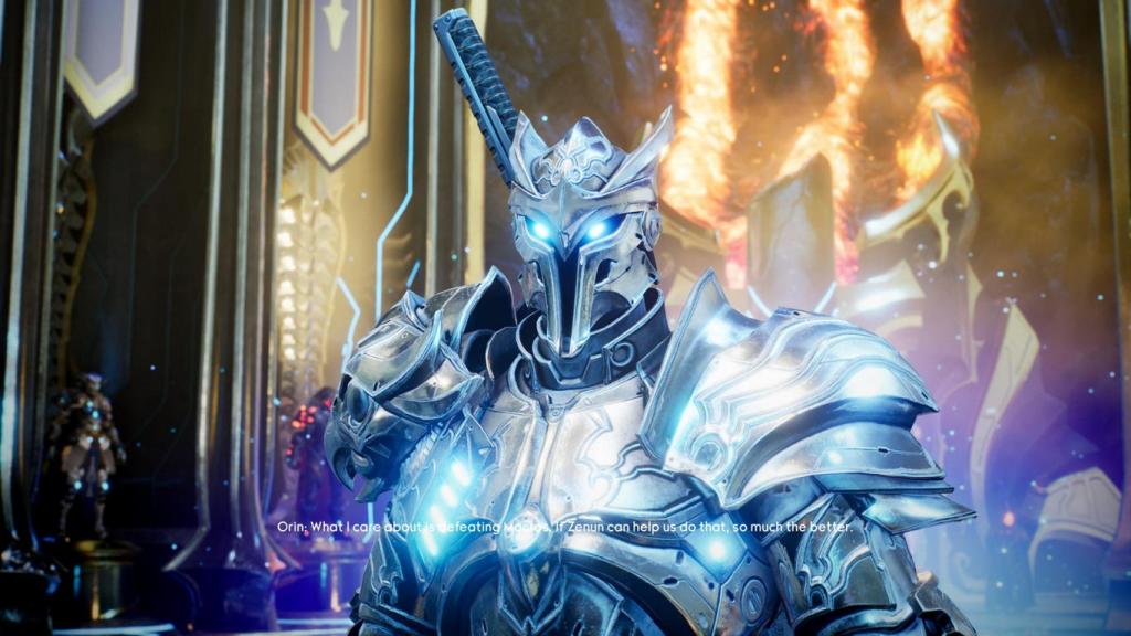 Ein wirkliches Manko ist leider die Geschichte, denn diese ist im Grund nahezu nicht-existent, obwohl sie einiges an Potential bietet, da man extra fürs Spiel eine komplett eigene Fantasy-Welt mit unterschiedlichen Dimensionen, Rassen, Glauben und Klassen, erschaffen hat, das aber nicht wirklich ausnutzt, sondern hingegen nur an der Oberfläche kratzt und es an vielen Stellen dem Spieler überlässt entweder seine eigenen Interpretationen anzustellen, oder manche Dinge einfach zu akzeptieren. Die Welt von „Godfall“ besteht aus drei unterschiedlichen Paralleldimensionen, die jeweils auf einem der Elemente, Erde, Wasser und Luft basieren. Übergreifend regiert die Knights Order unter Führung der Brüder Decimus und Odin. Sie sind dafür verantwortlich das Gleichgewicht zu wahren. Doch das Gleichgewicht gerät massiv ins Wanken, als Decimus, hungrig auf Gott-ähnliche Macht, beschließt seinen Bruder Odin umzubringen und danach alleine zu regieren. Im gesamten Spielverlauf werden die Hintergründe leider nicht weiter erörtert, was durchaus eine vertane Chance darstellt. Odin überlebt allerdings und erkennt, dass er das Gleichgewicht nur wieder herstellen kann, wenn er seinem Bruder gegenübertritt. Dafür ist er aber zu geschwächt, weswegen er beginnen muss seine Fähigkeiten und seine Ausrüstung zu verbessern und Verbündete suchen muss. Weiter muss er erkennen, dass Decimus bereits eine Schar von Verbündeten um sich geschart hat, von denen er einen nach dem anderen ausschalten muss, wenn er überhaupt eine Chance haben möchte…