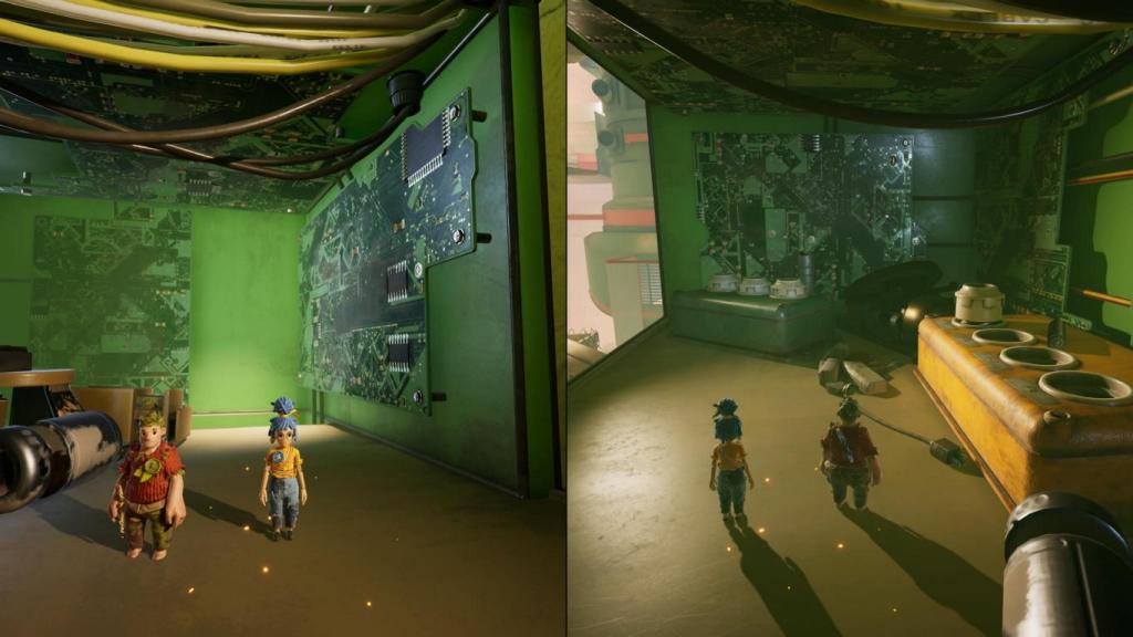 Das Spiel ist dieses Mal als „It takes Two“ betitelt, wobei der Name selbstverständlich Programm ist, denn das Spiel lässt sich ausschließlich im Coop spielen, was entweder lokal, wie auch über das Internet funktioniert und wofür es ausreicht wenn einer der Spieler das Spiel besitzt und den anderen via dem Integrierten Buddy-Pass einlädt. Und das funktioniert sogar Generationenübergreifend, solange man in der gleichen Konsolenfamilie bleibt. Man kann also über die PS5 mit einem Freund auf der PS4 gemeinsam spielen, oder über die Xbox Series X mit einem Freund auf der Xbox One, jedoch auch nicht Konsolenübergreifend. Das funktioniert auch wirklich gut, auch wenn es meiner Meinung nach etwas mehr Spaß macht, wenn man sich im gleichen Raum befindet und besser absprechen kann, denn viele Rätsel erfordern eine präzise Abfolge von unterschiedlichen Handlungen beider Charaktere, was natürlich auch Kommunikation voraussetzt.