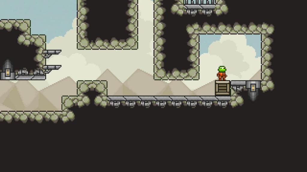 Die menschlichen Gegner agieren an sich eher passiv und sind, mal abgesehen vom Soldat, der mit seinem Gewehr bereitwillig das Feuer eröffnet, keine wirkliche Gefahr. Die sind hingegen eher die Levels an sich, die ihre Plattformer-Abschnitte mit Stachelgruben, hydraulischen Pressen und Timing-basierten Lasern kombinieren. Es gab zwar ein paar Levels, die ich mehrfach musste, was aber weniger durch die allgemeine Schwierigkeit, sondern eher durch Leichtsinn und unsaubere Ausführung begründet war. Im Vergleich zu anderen Puzzle-Plattformern, wie zum Beispiel „Reed“ ist der Anspruch bei „Infestor“ eher als moderat zu werten.