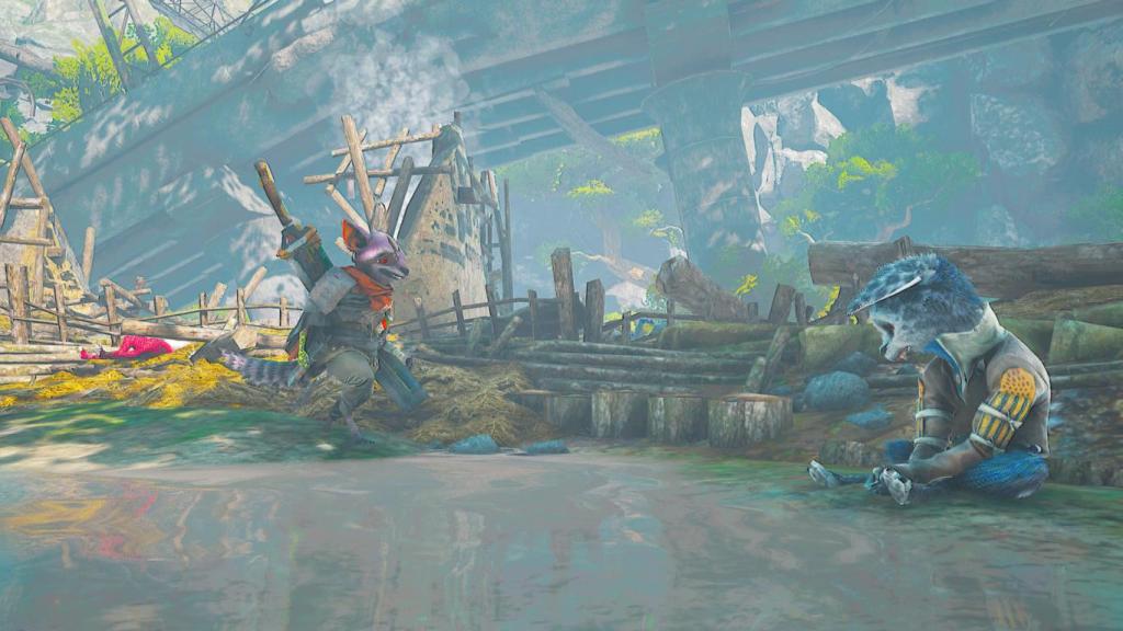Technisch liefert das Spiel eine solide, aber nicht herausragende Leistung ab. Genauer ist es sogar so, dass das Spiel auf der PS5 (und der Xbox Series X) auf 1080p gedrosselt wird, um größtenteils stabile 60fps zu erreichen. Zuerst war auch ein 4K-Modus implementiert, der aber kurz vor der Veröffentlichung auf Grund von unzureichender Performance gestrichen wurde. Im Spiel fällt das an sich aber nicht wirklich auf, auch wenn man dem Spiel für meinen Geschmack stellenweise zu viel mit Weichzeichner und Überbelichtung als Stilmittel arbeitet. Doch gerade die zerfallenen Ruinen unserer Gesellschaft, gepaart mit einer dominanten Natur sehen einfach nur toll aus. Hier haben die Entwickler von Experiment 101, die aus ehemaligen Mitarbeiten von Avalanche Studios bestehen und mit „Biomutant“ ihr erstes Spiel abliefern, sehr viel Liebe zum Detail bewiesen und folglich gibt es in der offenen Spielwelt auch einiges zu entdecken. Einzig was einige Spieler kritisieren ist die fehlende Vertonung, denn bis auf eine Ausnahme sind alle Charaktere Stumm, bzw. unterhalten sich in einer Fanatasiesprache, die über Untertitel übersetzt wird, was mich aber nicht wirklich gestört hat, bei Zelda macht man ja auch nicht so einen Hehl daraus. Die einzige Ausnahme ist ein Erzähler, der sowohl Hintergründe zur Handlung erzählt aber auch Handlungen auf dem Bildschirm kommentiert. Er verleiht der ohnehin schon, auf Grund der Tierfiguren, märchenhaften Geschichte noch mehr Charakter und verleiht. Wen das stört kann ihn aber auch über das Menü ausschalten, wobei ich persönlich fand, dass er das Spiel sogar bereichert, besonders wenn er die Überreste unserer Gesellschaft mit neuen und abstrusen Namen versieht, die aber im Kern durchaus Sinn machen.