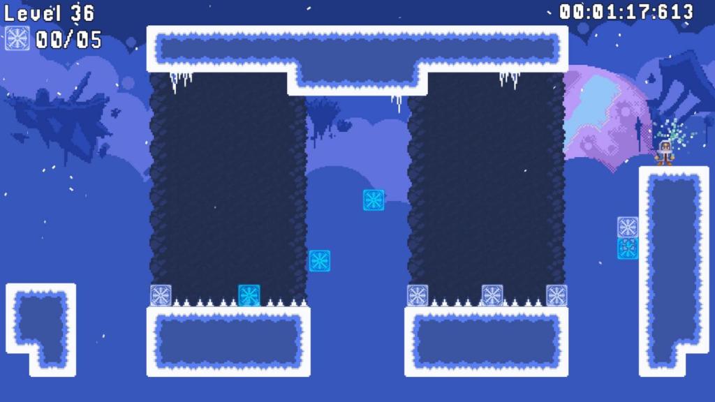 Gerade im Umfeld der Spiele mit überaus leichter Trophäenliste gibt es zwar mittlerweile etliche Puzzle-Plattformer, doch beschränken sich die meisten auf eine einzige Spielmechanik, in „0 Degrees“ gibt es allerdings gleich mehrere davon, die über den gesamten Spielverlauf eingeführt werden. Anfänglich beschränken sich unsere Aktionen auf Laufen, Springen und bestimmte Blöcke verschrieben, doch dann können wir selbst Blöcke erzeugen, die aber erst zum Stehen kommen, wenn sie an einer natürlichen Begrenzung zum Stehen kommen. Damit wir diese Fähigkeit nicht inflationär einsetzen können, können wir immer maximal fünf Blöcke erzeugen. Später können wir an bestimmten Stellen unseren Vorrat wieder auffüllen, was taktisch in den Lösungsweg eingebaut werden muss. Richtig anspruchsvoll wird es dann, wenn wir lernen diese Blöcke in der Luft gefrieren zu lassen, um neue Wege zu schaffen und wir alle Fähigkeiten miteinander verknüpfen müssen, um unbeschadet am Ende anzukommen.