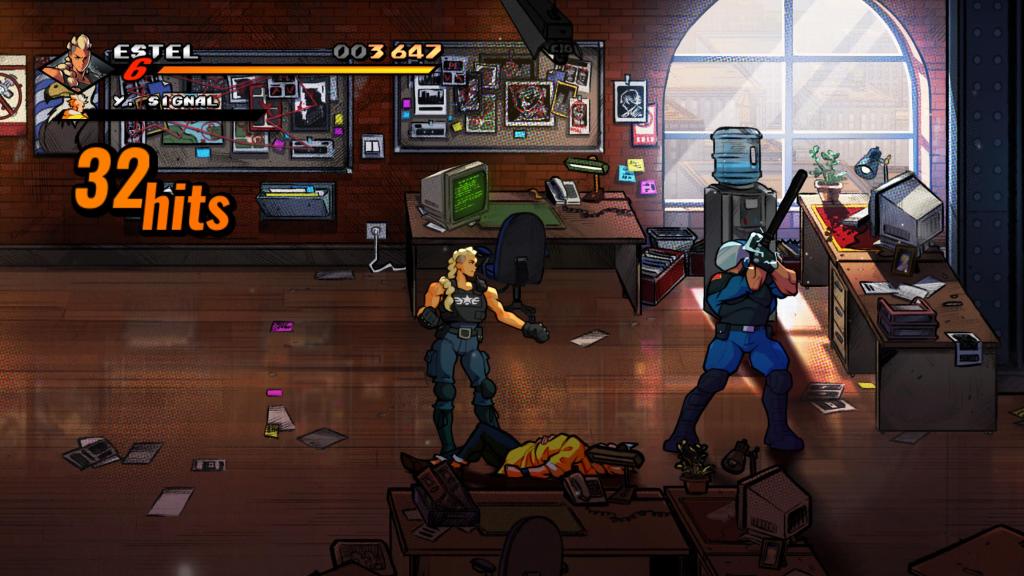 Durch den DLC „Mr. X Nightmare“ kommen zu den insgesamt 5 spielbaren Charaktere, von denen aber beim Spielstart erst 4 zur Verfügung stehen, da wir Adam Hunter erst im Verlauf der Geschichte freischalten noch drei weitere Charaktere dazu, die wir vom Start an auswählen können. So schließen sich Max, der Wrestler, den wir bereits im zweiten Teil spielen konnten, Shiva, einer der Bosse aus dem dritten Teil und die Polizistin Estel, die wir innerhalb der Story des vierten Teils kennenlernen, dem Raster an. Alle Charaktere unterscheiden sich voneinander, was sich sowohl in Geschwindigkeit, wie auch Stärke äußert. Der schnellste Charakter ist dabei Cherry Hunter, die zwar ziemlich schwach auf der Brust ist, aber dafür flink über den Bildschirm huscht und kurzer Zeit viele Schläge austeilen kann. Der Gegensatz dazu ist Floyd, der sich ziemlich langsam bewegt und auch wenige Schläge nach einander austeilen kann, aber dafür mit jedem Schlag sehr viel mehr Schaden austeilen kann. Ähnlich agiert Max, wobei der Fokus bei ihm eher auf Sprungangriffen liegt. Estel und Shiva sind wahre Kampfmaschinen, wobei Shiva den Nachteil mit sich bringt, dass er keine Waffen aufheben kann. Bei den anderen Charakteren, sprich dem Trio aus dem ersten Teil, Axel, Adam und Blaze, sind die Unterschiede zwar auch spürbar, aber weniger eklatant. Dennoch empfiehlt es sich unterschiedliche Charaktere einmal auszuprobieren, um herauszufinden welcher Charakter am besten zum persönlichen Spielstil passt.