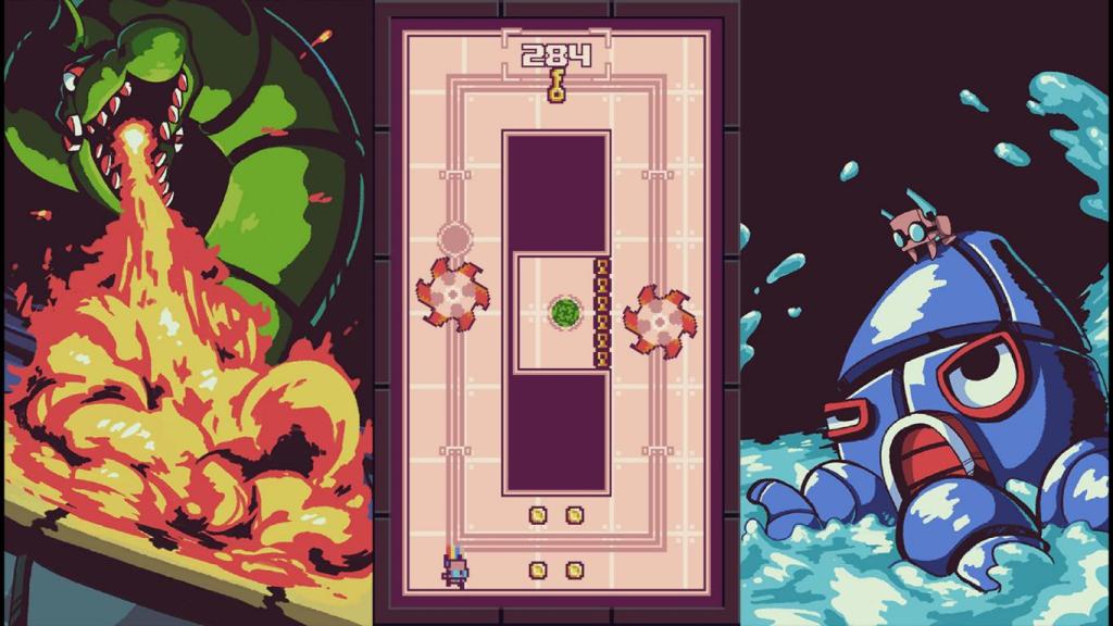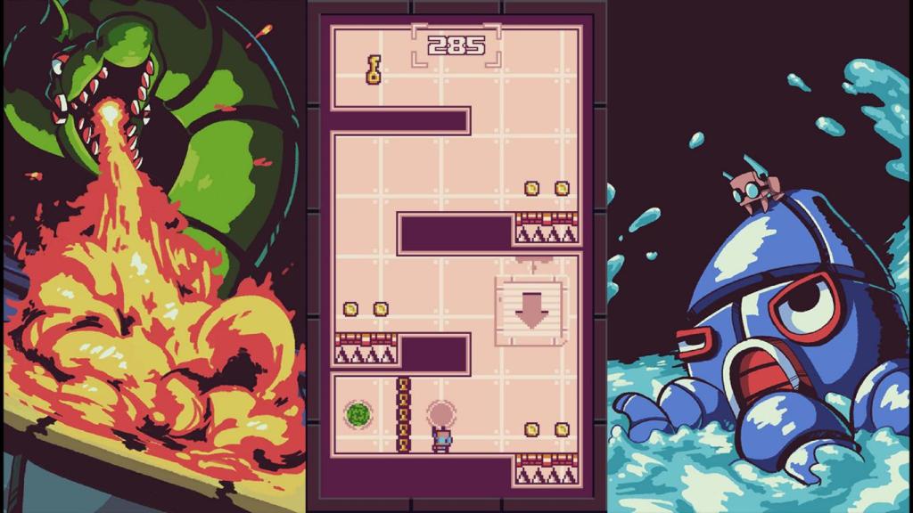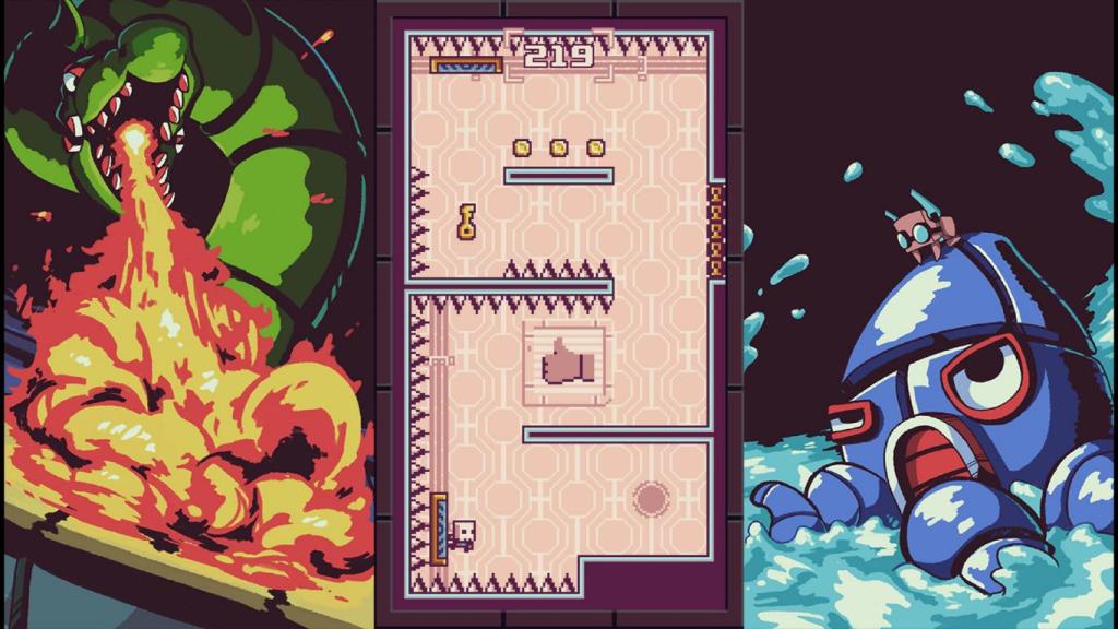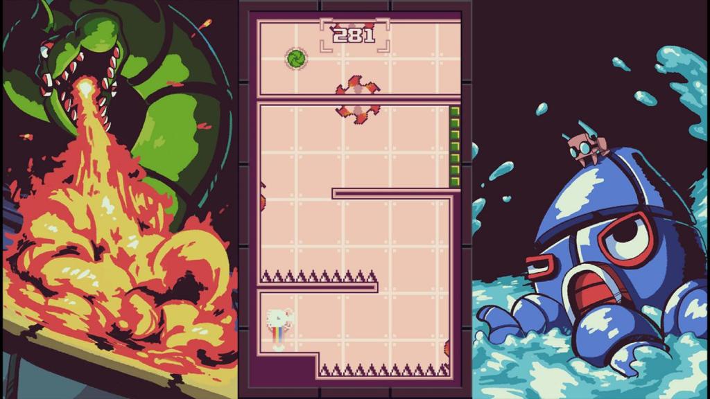 Die Levels sind jeweils in unterschiedliche Welten gegliedert, an deren Ende wir uns zusätzlich einem Boss stellen müssen, der zwar die auf die gleichen Mechaniken aus den normalen Levels setzt, aber durch eine konstante Bedrohung durch den Boss und Zeitdruck eine zusätzliche Herausforderung mit sich bringt. Zusätzlich gibt es innerhalb der Welten noch optionale „Warp“-Levels, die eine optionale und besonders anspruchsvolle Herausforderung darstellen. Doch diese müssen erst durch das Einsammeln von Tokens in den Levels freigeschaltet werden.