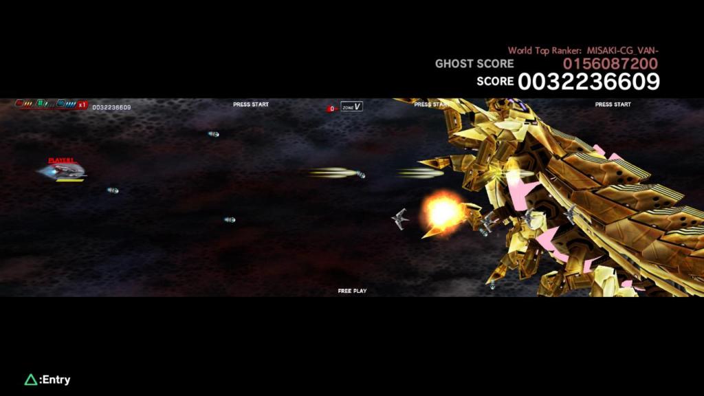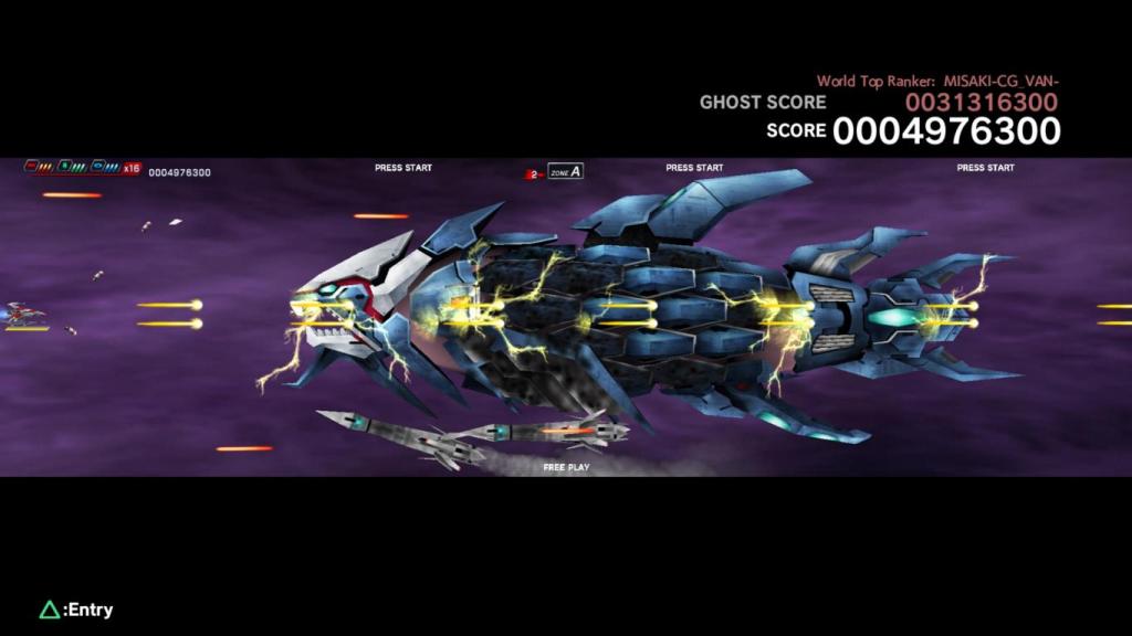 Vor ein paar Jahren gab es bereits mit „Dariusburst: Chronicle Survivors“ eine echt solide Umsetzung des Ausgangsmaterials, die mittlerweile aber unwahrscheinlich teuer geworden ist und ich erhoffte mir eine aufgemotzte Version davon mit dem neuen Spiel. So trat leider direkt beim Starten etwas Ernüchterung ein, denn gerade im direkten Vergleich bietet Another Cronicle überraschend wenig Mehrwert. Nicht nur fehlen die tollen Schiffe aus anderen ironischen Reihen, die Survivors in Zusammenarbeit mit Taito, Capcom, Sega und Co im Gepäck hatte, sondern das Spiel ist auch unwahrscheinlich kurz geworden. Je nachdem welchen Spielmodus man wählt ist man in 10-15 Minuten durch.