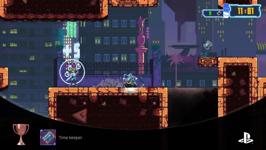 Jack hat sich ihren unfreiwilligen Besuch in New Barcelona, einer Cyberpunk-Version der spanischen Metropole in der Zukunft wahrscheinlich komplett anders vorgestellt, doch es ist eine wirklich lösliche Sache, dass man versucht hat einem Spiel, das sich vornehmlich an Speedrunner richtet, eine Narrative zu geben, die sowohl durch animierte Cutscenes, aber auch sarkastische Gespräche zwischen Jack und ihrer KI transportiert wird.