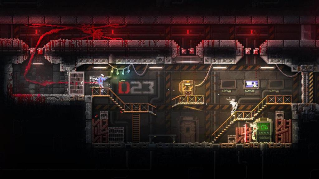 Vordergründig gibt es erst einmal nicht besonders viel Story: Wir erwachen als kleiner Schleimklumpen in einem Laborkomplex und beginnen uns den Weg heraus zu Bahnen. So schaffen wir es durch die Absorbierung organischer Materie unsere Form zu vergrößern und sogar Tentakel zu bilden, die wir natürlich einsetzen, um Verwüstung in unserem Weg zu sähen und uns Stück für Stück näher Richtung Freiheit vor zu kämpfen. Erst in Laufe des weiteren Verlaufs bekommen wir etwas mehr Hintergrund und erleben einige Flashback-Sequenzen, in denen wir in die Haut eines Wissenschaftlers schlüpfen, der allem Anschein eine gewichtige Rolle darin spielt, wie es uns in Gefangenschaft verschlagen hat…