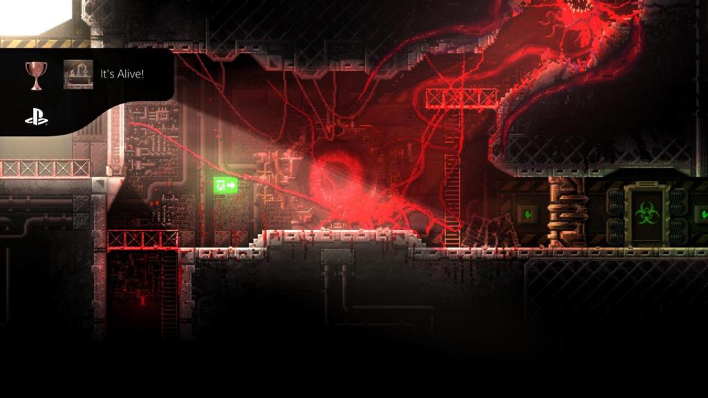 So limitiert uns das Spiel an einigen Stellen bewusst und hat während meinem Durchspielen für die ein oder andere Nervenaufreibende Situation gesorgt hat. Inhaltlich erinnert das dabei stark an das erste „Metroid“, wo wir von einigen Upgrades immer nur eins mitführen konnten. Hatten wir das falsche ausgerüstet, gab es einige Abschnitte, die damit künstlich erschwert, oder gar unmöglich wurden. Ganz so restriktiv ist es zwar nicht in „Carrion“, doch anscheinend wollten die Entwickler, dass es keinesfalls zu leicht wird, denn auch wenn das Spiel mit einem recht moderaten Schwierigkeitsgrad startet, zieht dieser besonders in der zweiten Spielhälfte enorm an und ein paar Abschnitte erforderten einige Wiederholungen, bis sie endlich überwunden waren. Immerhin sind die Speicherpunkte fair gesetzt, sodass unnötig lange Laufwege die Ausnahme bleiben.