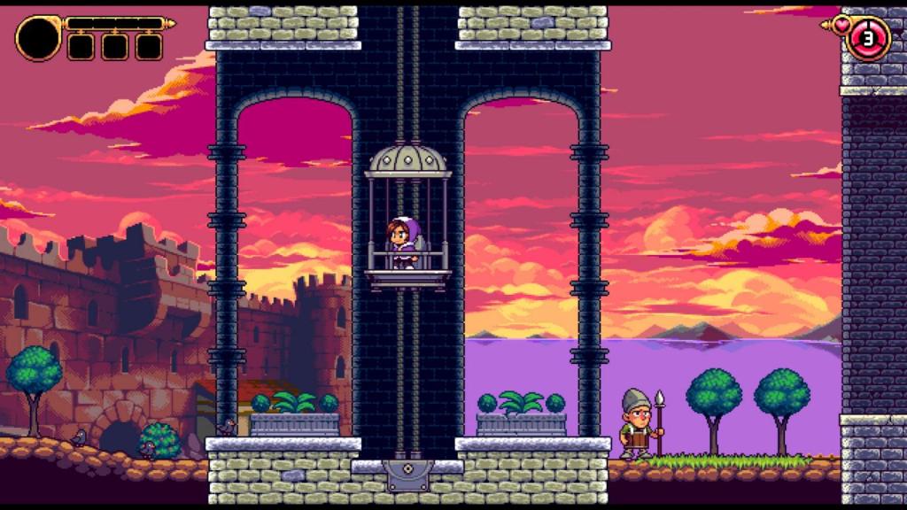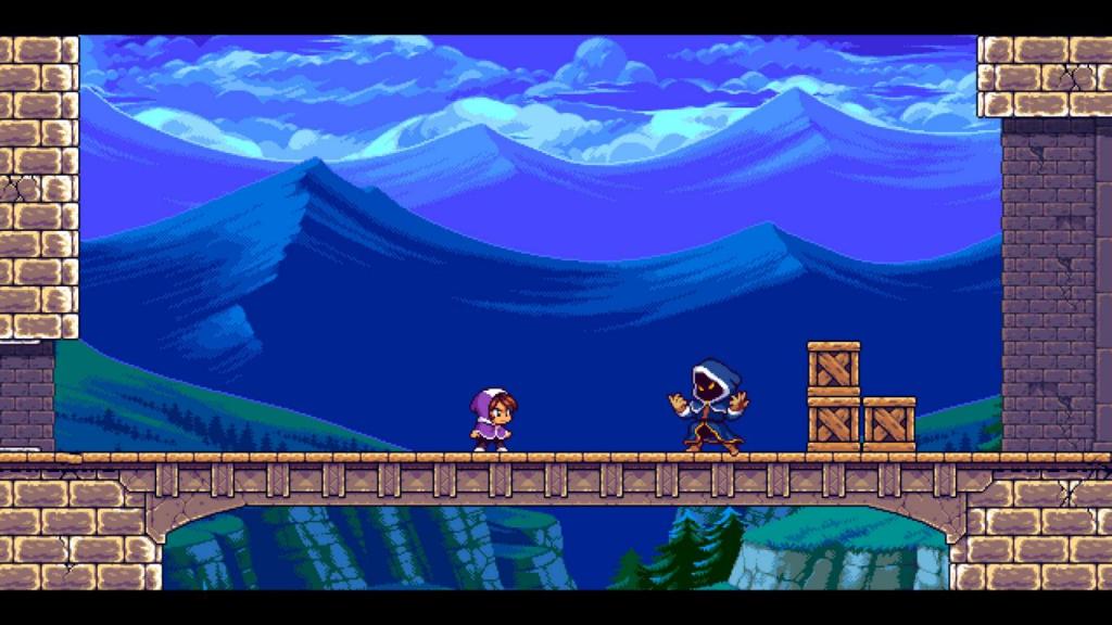 Technisch ist das Spiel, Vergleich zum Vorgänger, einen massiven Schnitt nach vorne, bzw. genaugenommen eine „Verdoppelung“. Denn setzte bei „Alwa’s Awakening“ noch auf eine authentische 8-Bit-Pixeloptik, die getrost auch direkt von NES stammen könnte, so orientiert man sich beim Nachfolger an den ausladenden Grafiken der 16-Bit-Konsolen und vornehmlich dem SNES. So verfügt das Spiel über größere Sprites, detailreichere und abwechslungsreichere Hintergründe und eine insgesamt differenziertere Farbpalette. Und trotz aller Liebe zur Authentizität verzichtet man nicht auf unterschiedlich scrollende Ebenen in der Darstellung und viele verspielte Details, sowohl im Leveldesign, aber auch den Charakter-, sowie Gegner- und NPC-Animationen. Lediglich eine auf eine Sprachausgabe muss man wieder verzichten, was für mich aber kein Dealbreaker ist, da es meines Erachtens auch nicht zum gewählten Artstyle passen würde.