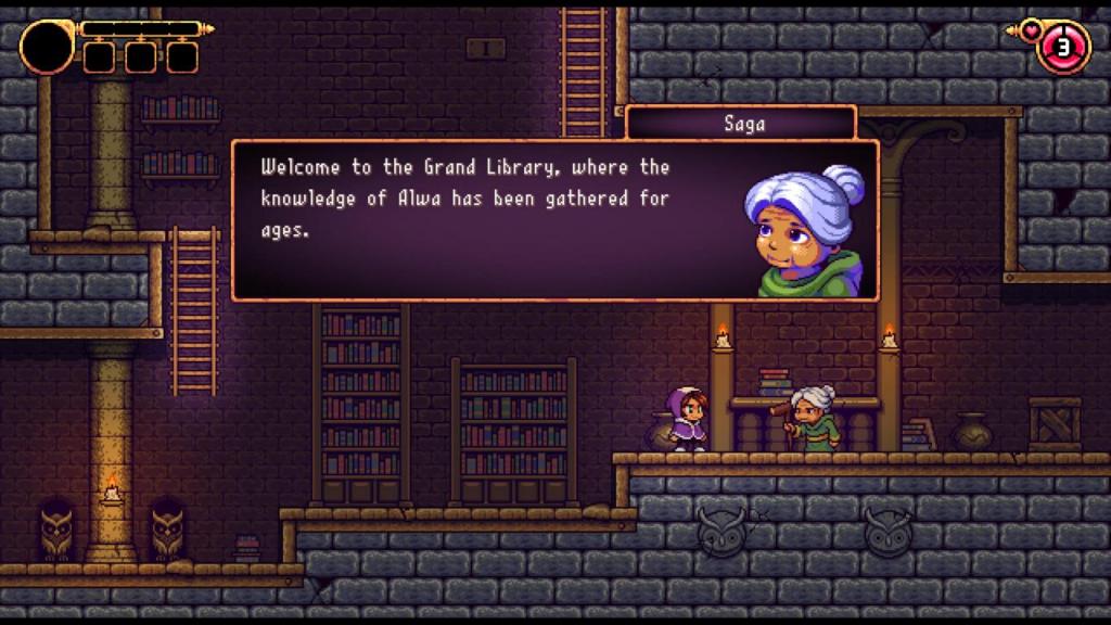 Wir spielen Zoe, eine Heldin gekleidet in lila Roben, die ohne Erinnerung am Flussufer von Alwa aufwacht. Als sie versucht die Mosaiksteine ihrer Vergangenheit wieder zusammenzusetzen kreuzt sie den Weg des bösen Zauberers Vicar, der auf der Suche nach mehreren magischen Artefakten ist, die ihn unbesiegbar machen sollen. Auch wenn Zoe’s größtes Ziel die verlorenen Erinnerungen sind, weiß sie dennoch, dass sie Vicar die Stirn bieten muss und beliebt sich selbst auf die Suche nach den Artefakten… – Die Story gewinnt zwar keinen Preis für Originalität, doch bietet genug Motivation und hält dennoch die ein oder andere Überraschung bereit, die man nicht unbedingt kommen sieht.