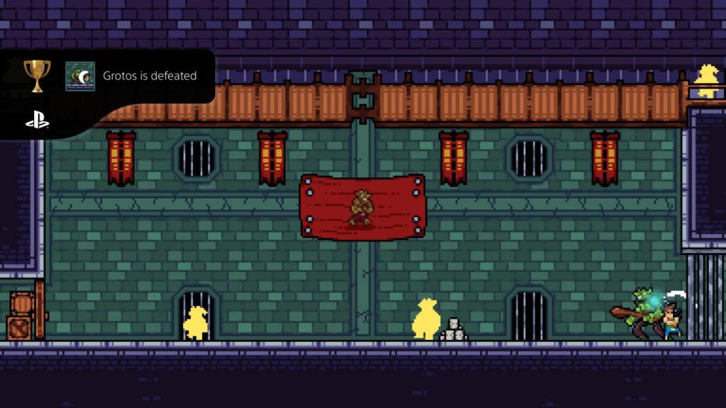 So kämpfen und springen wir uns durch 8 Welten mit wiederum 8 Levels pro Welt und einem Boss am Ende. Jack beherrscht am Anfang neben rudimentären Kampftechniken auch Sprung- und Kletterfähigkeiten. So kann er sich an Vorsprüngen festhalten und hochklettern, was allerdings nicht unbegrenzt möglich ist, sondern durch eine Ausdauerleiste begrenzt wird. Verlässt ihn die Kraft, stürzt er in die Tiefe und so muss man das mit berücksichtigen. Weiter gibt es auch Bereiche, wo Jack nicht alleine weiterkommt und Butch ihm aushelfen muss. Butch kann durch enge Durchgänge klettern und beherrscht einen Doppelsprung, der es ihm erlaubt höher gelegene Ebenen zu erreichen.