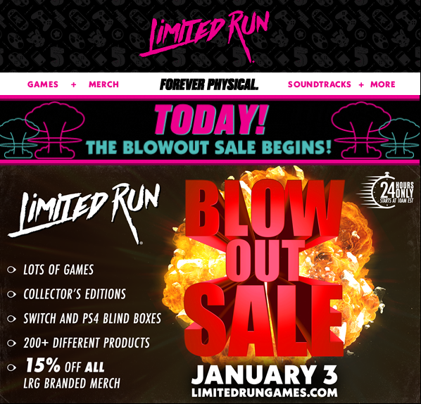 Die mittlerweile gängigere Praxis ist allerdings ein Zeitfenster, indem das Spiel bestellt werden kann und erst nachdem das Fenster geschlossen ist steht die genaue Anzahl der Bestellungen vor, die zur Absicherung für Reklamationen, für Messen und Sonderaktionen, wie den „Blowout Sale“ auf die nächsten vollen Tausende aufgerundet werden. Werden beispielsweise 4.600 Exemplare eines Titels vorbestellt, gibt Limited Run Games 5.000 Exemplare in Auftrag. Der große Vorteil dieses Systems ist, dass jeder eine Chance hat ein Exemplar zu ordern, da das Zeitfenster durchaus mehrere Wochen betragen kann. Der große Nachteil ist allerdings, dass die Spiele erst danach in Produktion gehen und die Zeit zwischen Bestellung und Lieferung mehrere Wochen, wenn nicht Monate andauern kann, eine Zeit zu der man allerdings bereits in Vorleistung treten muss. Weiter muss man wissen, dass die Sendung erst auf die Reise geht, wenn alle Titel verfügbar sind, da keine Teillieferungen vorgenommen werden. All das sind Faktoren, die im Netz immer wieder für Kritik sorgen, die man aber einfach vorher Bedenken sollte.