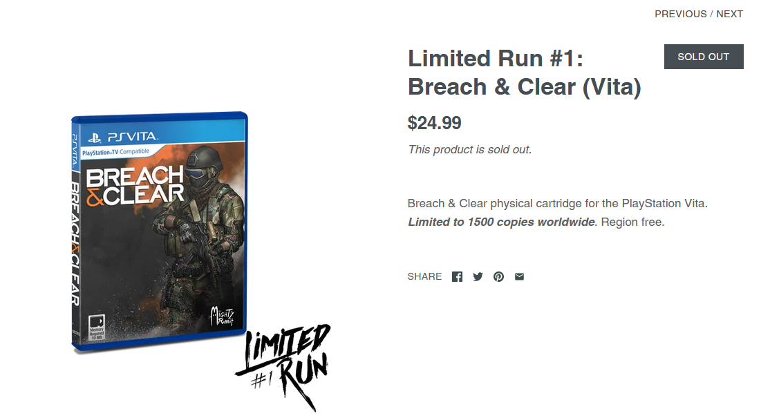 Als initialer Test kratzte man die letzten verfügbaren Gelder zusammen und gab mit einer Auflage von 1.500 Exemplaren vom „hauseigenen“ Spiel „Breach & Clear“ für die PlayStation Vita in Auftrag. Immerhin hätte man es auf diese Weise geschafft eines der eigenen Spiele in physischer Form zu erhalten, selbst wenn Limited Run Games und Mighty Rabbit Studios gleichermaßen untergehen würden. – Doch zur allgemeinen Überraschung kam es anders, denn die komplette Auflage war binnen zwei Stunden komplett ausverkauft. Das gleiche geschah mit dem zweiten Test, der folgerichtig das andere Spiel von Mighty Rabbit Studios, „Saturday Morning RPG“, dieses Mal allerdings für die PS4 war. Beide Spiele erzielen heute in Sammlerkreisen Preise, die weit über den Initialen Verkaufspreisen von jeweils USD 24,99 liegen.