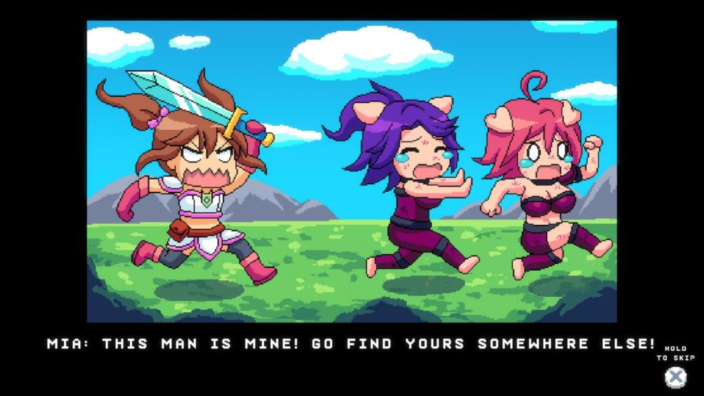 Dabei ist das Setup herrlich abstrus: Mia könnte glücklicher nicht sein, denn sie hat ihren Ritter in schimmernder Rüstung bereits gefunden und geheiratet. Doch abseits von ihr haben auch noch diverse Monstermädchen ein Auge auf ihren Fernando geworfen, die sie regelmäßig verjagen muss. Doch eines Tages kommt eine Gegenspielerin namens Morgana auf den Plan, der Mia nicht gewachsen zu sein scheint und entführt Fernando. Und es ist an Mia alles daran zu setzen ihn wieder zu bekommen. Und um das zu erreichen muss sie sich dem Gefolge von Morgana stellen, eine nach der anderen besiegen und sich derer Fähigkeiten bemächtigen, um die Herausforderungen zu meistern, die sich ihr in den Weg stellen…