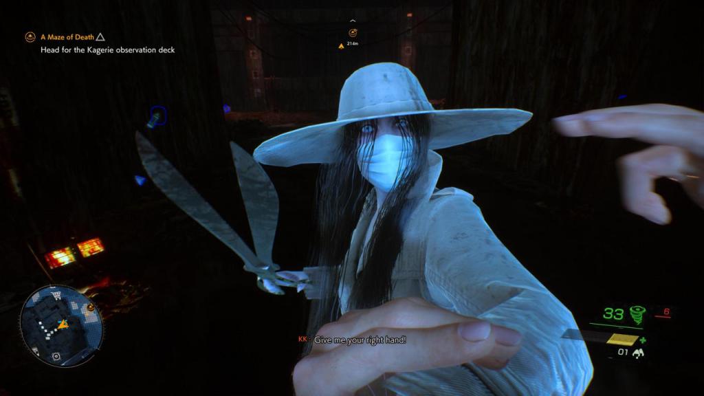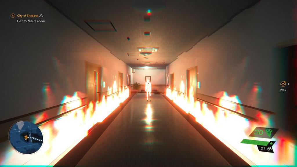 Das Kampfsystem ist dabei eine ziemlich frische Interpretation des First Person Shooters, indem man ohne traditionelle Waffen kämpft, sondern Akito’s Körper zur Waffe wird und er aus seinen Händen unterschiedliche Elementarprojektile verschießt, was jeweils mit unterschiedlichen Handbewegungen untermalt wird und dadurch etwas komplett Neues darstellt. Haben wir unsere Gegner genug geschwächt, wird ihr Innerstes sichtbar und wir können zu einem mächtigen Finisher absetzten, was auch gleichzeitig für mehrere Gegner funktioniert und echt cool inszeniert ist, weil wir buchstäblich das Leben aus den Gegnern reißen. Zusätzlich zum Kampfsystem, das ebenfalls erlaubt unterschiedliche Angriffstypen zu mächtigen Kombos zusammenzusetzen, gibt es selbstverständlich auch Block und Konter, die pointiert eingesetzt auch essenziell für Gedeih und Verderb sind.