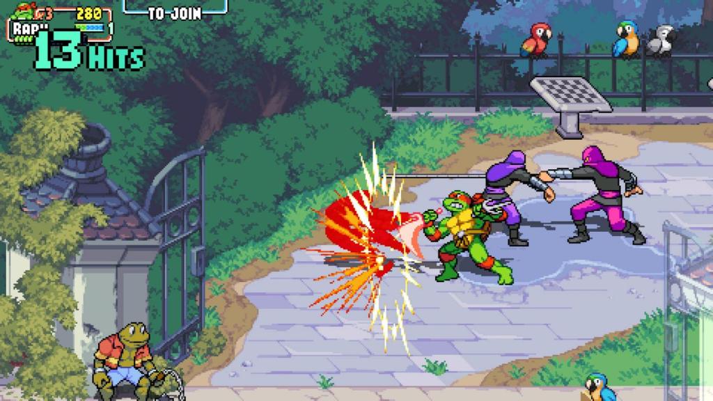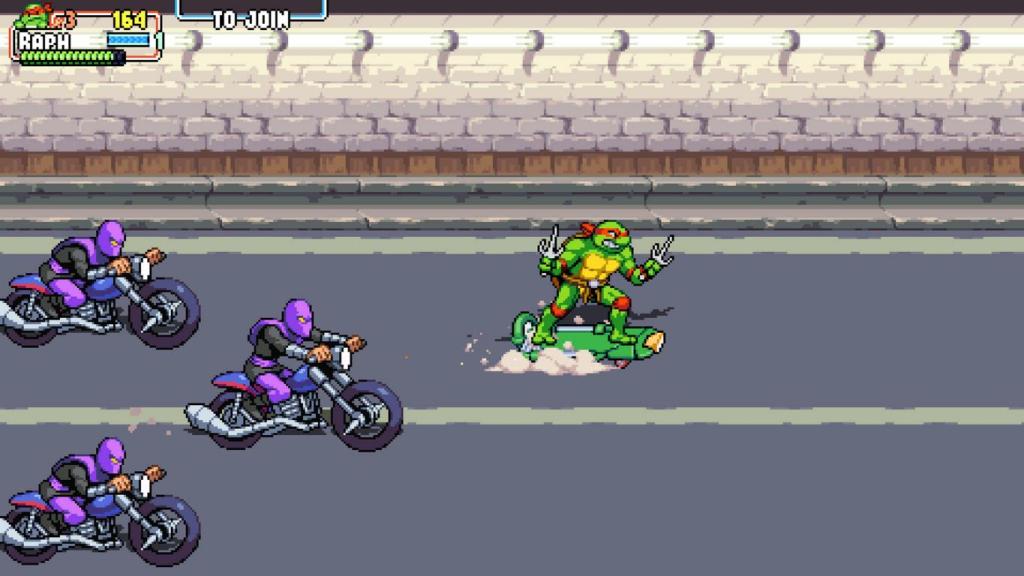 Optisch, wie auch spielerisch ist das Spiel eine Weiterentwicklung von Turtles in Time und präsentiert sich in schicker Pixeloptik. Weiterentwickelt wurde allerdings sowohl die Abwechslung der einzelnen Levels und die überaus umfangreiche Moves-Liste. Die Charaktere unterscheiden sich in Ausdauer, Geschwindigkeit und Reichweite, so empfiehlt es sich auch mal unterschiedliche Charaktere auszuprobieren, wer zu dem persönlichen Spielstil am besten passt. Die insgesamt sechszehn Levels variieren in Länge, sind aber alle ziemlich abwechslungsreich, wie Untergrund, Park, Labor, oder die Mall und warten alle am Ende mit einem Boss auf. Die Levels werden über eine Minimap, die stark an das NES-Spiel, oder auch „Super Mario Bros. 3“ erinnert.