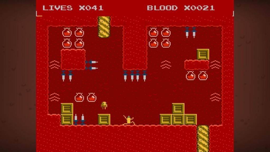 Den Anfang macht „Flea!“, ein charmantes 2D-Jump ’n‘ Run, das selbst Veteranen einiges abverlangen wird. Denn nicht nur kann der hyperaktive Floh namens Henry einfach nicht aufhören zu hüpfen, sondern auch alles und ich ich meine wirklich alles in den Levels tötet uns in einem Hit. Über die insgesamt achtzig Levels erstreckt sich eine überraschend gut ausgearbeitete Story mit großen und kleinen Überraschungen, die mich ziemlich mitgerissen hat. Man sollte sich nur im Klaren sein, dass man sehr oft den Bildschirmtod sterben wird. Gut dass man über das Einsammeln von Blut in den Levels in regelmäßigen Abständen weitere Leben kaufen kann. Zusätzlich bietet die Portierung aber sogar noch weitere Quality of Life-Verbesserungen in Form von Save States und einer Rückspulfunktion, die zusätzliche Leben quasi überflüssig macht.