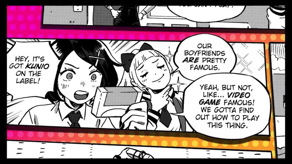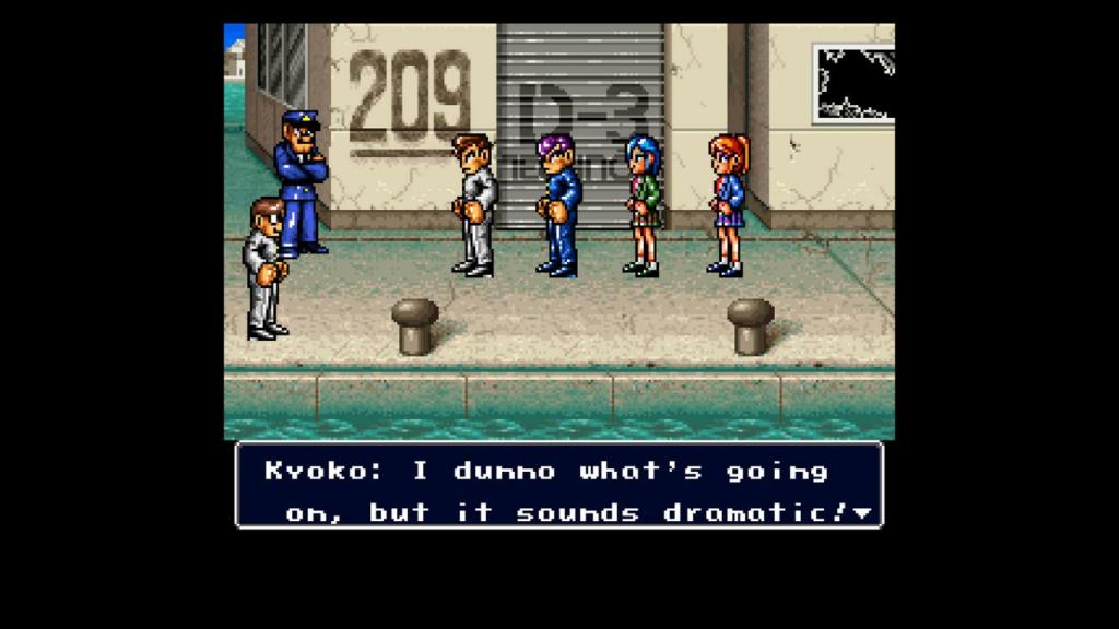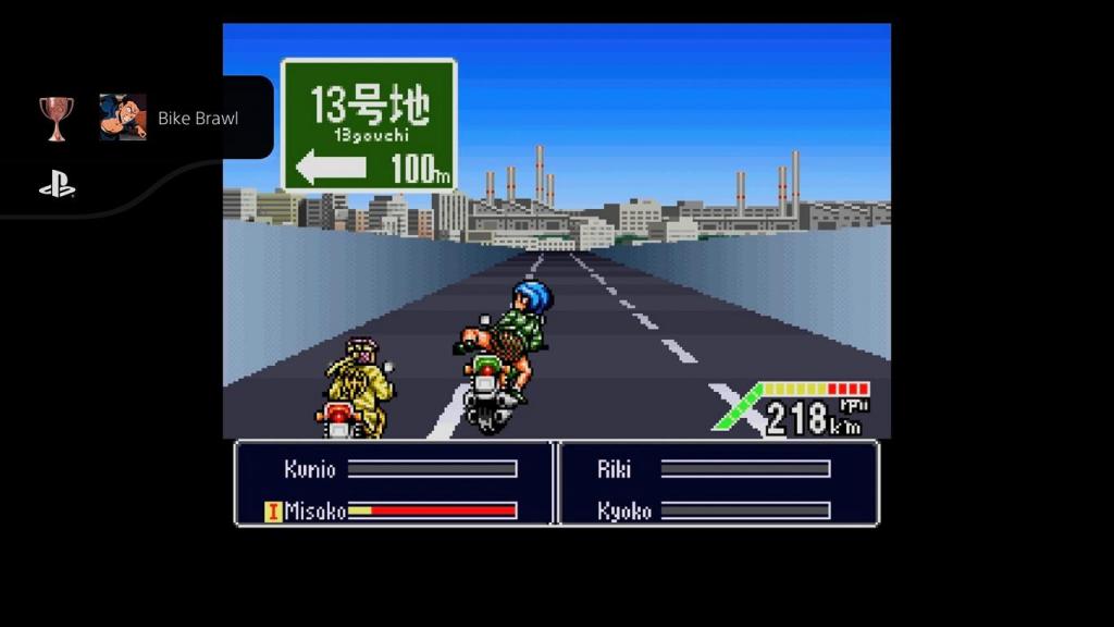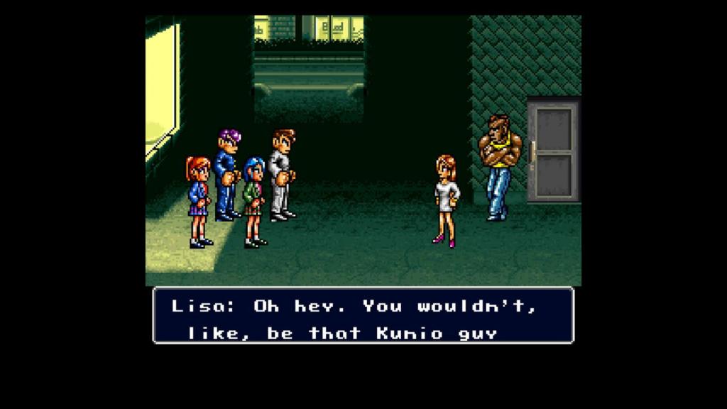 Das 1994er Spiel, das im Gegensatz zum Rest der Reihe überraschend ernste Töne anschlägt, da Kunio für Unfall mit Todesfolge und Fahrerflucht inhaftiert wird, führte zum ersten Mal Misako und Kyoto als spielbare Charaktere ein, wobei man Kunio und Riki ebenfalls spielt und sogar on-the-Fly zwischen den Charakteren wechseln kann. Zwar verzichtet man für das Spiel auf die RPG-Elemente, doch hebt sich mit ziemlich viel Narrative von der Genre-Konkurrenz ab. Beschränke man sich zum Beispiel bei Double Dragon und Co. eher auf ein paar kurze Textzeilen an Anfang und Ende, nutzen die Entwickler hier jede Möglichkeit für Gespräche der Charaktere untereinander, mit NPCs, oder sogar mit den Gegnern.