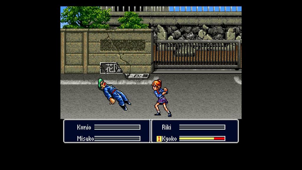 Anfangs steuern wir nur Riki und Kunio und wohnen ihnen bei, als sie aus dem Gefängnis ausbrechen, um ihre Unschuld zu beweisen, doch dann gesellen sich zunächst Mysako und dann Kyoko zum Raster hinzu. Wir steuern immer einen der Protagonisten und können per Knopfdruck umschalten. Jeder Charakter hat seinen eigenen Lebensbalken und wenn einer Null erreicht, heißt es Game Over, wobei es aber unbegrenzte Continues und faire Rücksetspunkte gibt. Die Männer sind zwar etwas stärker und können Gegner auch in den Schwitzkasten nehmen, doch die Frauen sind schneller und können nicht festgehalten werden. Daher sollte man je nach Gegnertyp überlegen mit wem man in den Kampf zieht, wenn es die verfügbaren Lebensbalken zulassen versteht sich.