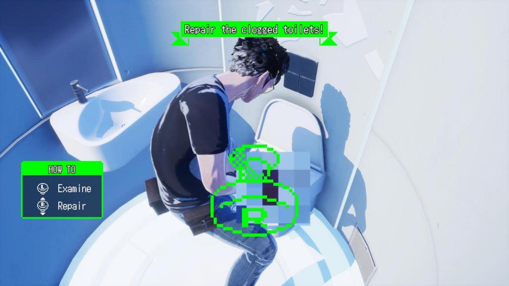 Das Gameplay besteht daher wieder aus zwei scheinbar entgegengesetzten Grundmechaniken. Zum einen der stylishen Action und dem Kampf gegen die Aliens und ihrer Gefolgschaft, in der wir uns durch abwechslungsreiche Bereiche kämpfen und alles und jeden niedermetzeln. Und zum anderen das im Vergleich eher unspektakuläre Geldverdienen in der Spielwelt, um die Startgebühr für das nächste Match zu verdienen. Das zeichnet sich durch allerlei Minispiele aus, die eine ziemliche Bandbreite abdecken. So können wir zum Beispiel Rasen mähen, verstopfte Toiletten reinigen, Abfall an der Straße sammeln, aber auch haushohe Riesenechsen, die bestimmt nur ein zufällig an Godzilla erinnern mit einem Panzer wegballern, alltägliche arbeiten eben. Diese mögen zwar monoton wirken, haben aber meist auch einen Twist dabei, was in der (gewollten) Monotonie dennoch für Abwechslung sorgt.
