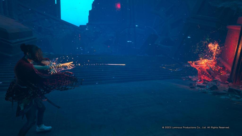 Das gesamte Bewegungs- und Kampfsystem könnte dabei in Anbetracht der Möglichkeiten schnell auf ein heilloses Durcheinander hinauslaufen. So hatte es mich bei der ersten Demo zugegebenermaßen auch noch etwas überfordert, da man ohne wirkliche Einführung mit vielen neuen Fähigkeiten auf einmal konfrontiert wird, doch im fertigen Spiel geht es wirklich gut von der Hand, da die Fähigkeiten Peu à Peu eingeführt werden und logisch aufeinander aufbauen. Spielerisch wie optisch erinnert das insgesamt sehr stark an „Infamous: Second Son“, wo wir am Ende auch komplett unterschiedliche Fähigkeiten hatten, die wir jederzeit wechseln und damit zu mächtigen Kombos verketten konnten, auch wenn „Forspoken“ sogar noch um einiges mehr bietet, als das eben erwähnte Game.