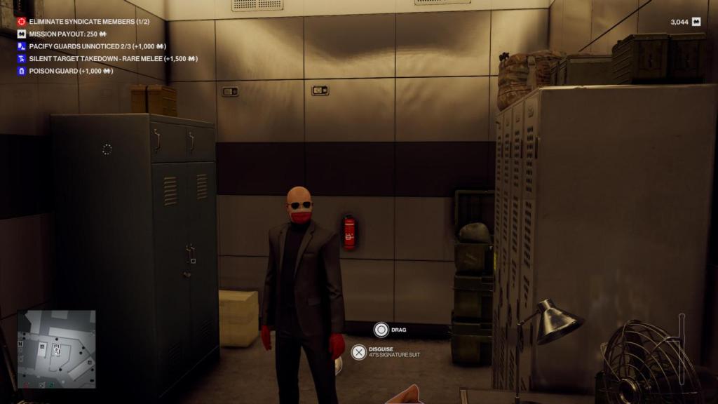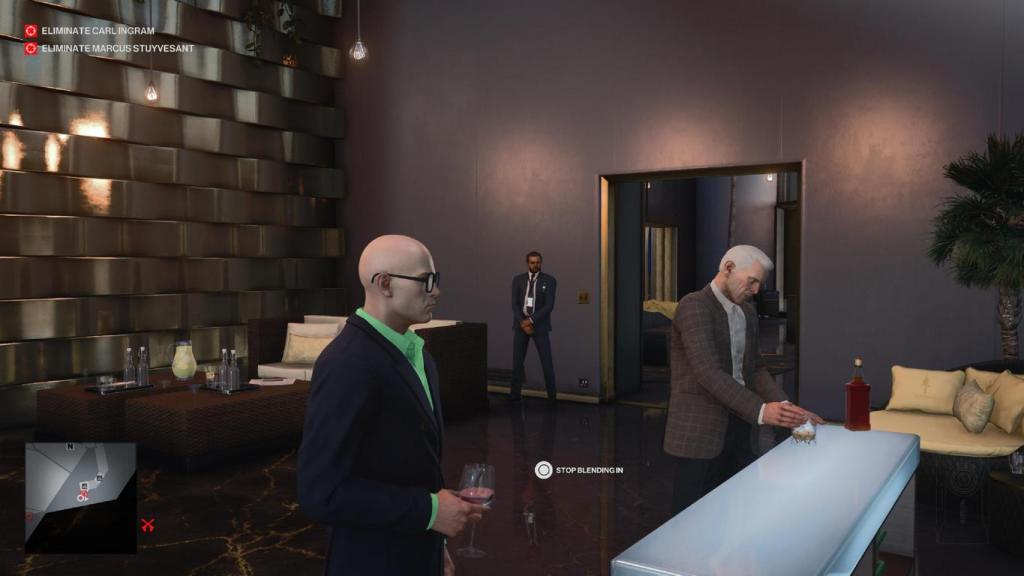 Wer allerdings eine längere Pause zwischen den letzten Sessions mit 47 hatte, sollte vorher nochmal einen Blick in die Steuerung werfen, denn so ist es mir anfangs blöderweise passiert, dass ich entweder meinem Waffe plötzlich gezogen habe und die gesamte Map dann hinter mir her war, oder man eine zeitkritische Eingabe, wie das Vergiften eines Drinks verpasst, weil man mit der Steuerung kämpft. Denn Freelancer nimmt uns zu keiner Zeit an die Hand. Der Modus richtet sich eindeutig an Veteranen und daher sind sämtliche Hilfen und Tutorials ausgeschaltet.