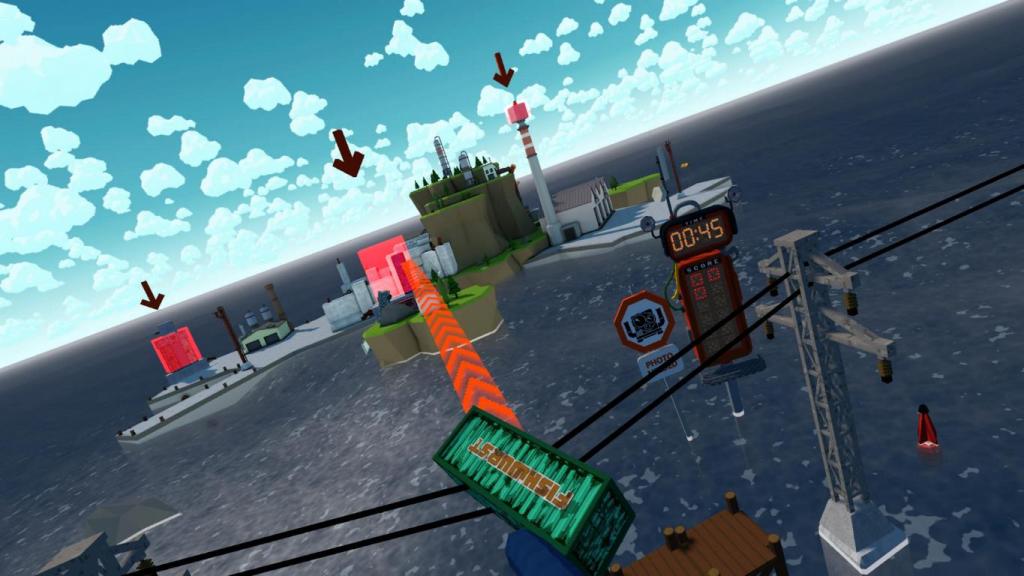 Das zeigt sich schon in der Art, wie Levels beendet, oder neu gestartet werden können. Nachdem wir unsere Aufgabe erledigt haben erscheint ein Ballon mit einem Griff, den wir betätigen müssen, um das Level zu beenden. Für einen Reset des Levels müssen wir uns nur umdrehen. Hinter uns ist immer ein kleines Haus, dessen Dach sich abheben lässt, um einen sprichwörtlichen Reset-Knopf betätigen zu können. Bei all den Bewegungen sollte man nur vorher unbedingt sine Umgebung für das Spiel „sicher machen“, denn mir ist es immer wieder passiert, dass beim Fuchteln gegen eine tiefer hängende Lampe gestoßen bin…