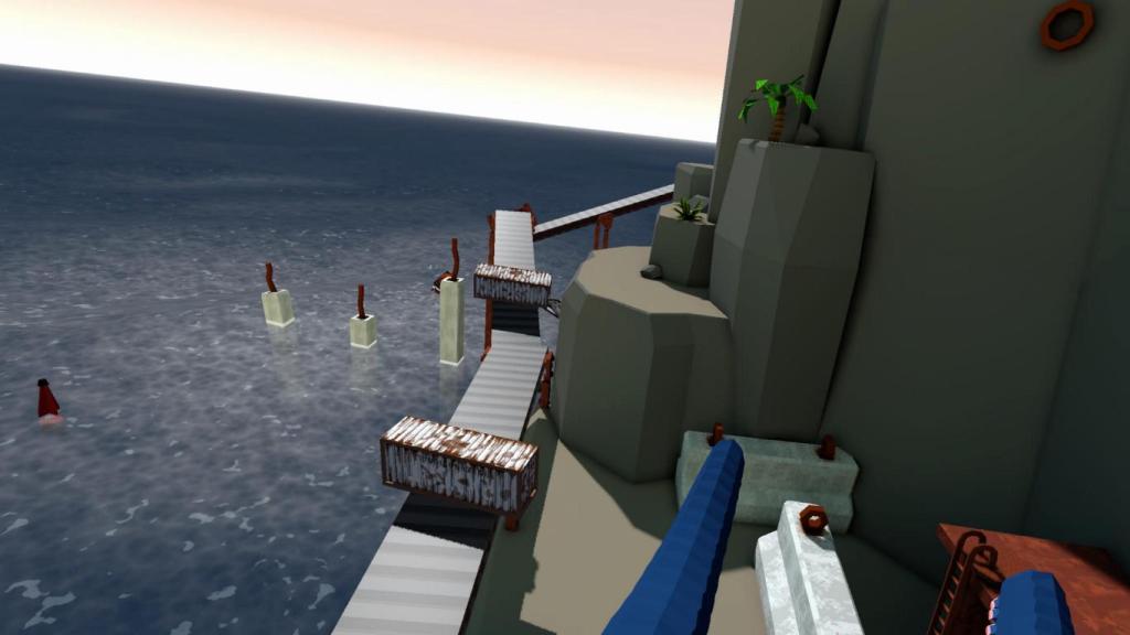 Die Steuerung ist simpel. Wir sehen über die VR-Brille durch die Augen des Monsters und können uns in jedem Level in einem abgesteckten Bereich frei bewegen. Dafür werden die Analogsticks der Sense Controller verwendet. Die Bewegungen sind für meinen Geschmack, oder eher Magen, zwar stellenweise etwas zu abgehackt, aber über ein kurzes flaues Gefühl ging es dann doch nicht hinaus. Dafür sind die Bewegungen zu eingeschränkt. Unsere größte Interaktion findet hingegen über die Tentakel statt, die sowohl für Gespräche, wenn wir kleine Figuren antippen, unsere Aufgaben, wie selbstverständlich jede Menge Schabernack benutzt werden. Die Welten bieten viele Interaktionspunkte, auch wenn viele gar nichts mit den Aufgaben zu tun haben. Sowas gefällt mir immer wirklich gut, da es zeigt, dass sich die Entwickler Gedanken darüber gemacht haben, wie man die Spielwelt lebendiger gestaltet.