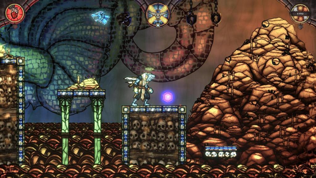 Das Spiel ist als Metroidvania konzipiert und auch die Aufteilung in abgesteckte Levels zunächst einen eher linearen Charakter vermuten ließe, laden die Levels zu wiederholten Besuchen ein, da wir mit neuen Fähigkeiten in komplett neue Bereiche vordringen können und damit Ressourcen verdienen, die wiederum zum Aufleveln verwendet werden. Anfänglich sind wir mit einem Werwolf unterwegs, der Projektile abfeuern, doch im weiteren Spielverlauf gesellen sich weitere Fabelwesen mit zusätzlichen Fähigkeiten dazu, die wir in den Levels jederzeit wechseln können. Das geht zwar nicht in die Tiefe eines „Castlevania: Symphony of the Night„, appelliert aber dennoch an uns als Spieler, wenn man Bereiche in den Levels erblickt, die einem bisher anscheinend vorenthalten sind, zumindest geht mir das immer so.