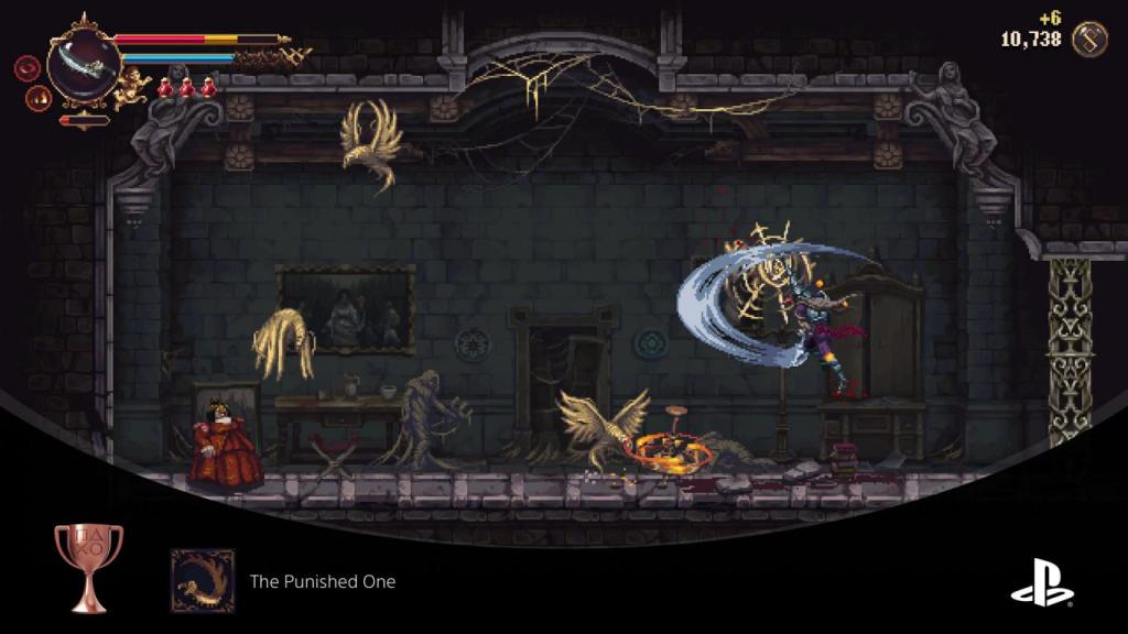 Insgesamt hatte ich wirklich viel Spaß mit „Blasphemous 2“, das spielerisch wie technisch dem Erstling noch einiges drauf setzt. Auch wenn das Spiel auf den gleichen, liebevollen Pixel Look setzt, wie der erste Teil, so muss erwähnt werden, dass die Zwischensequenzen dieses Mal nicht gepixelt, sondern in Zeichentrick animiert sind. Für mich war das kein Problem, auch wenn es einen gewissen Bruch darstellt, aber einige Fans scheinen das etwas zu kritisieren. Ich habe für 100% und beide verfügbaren Enden in etwa 25 Stunden auf der Uhr gehabt, was eine beachtliche Spielzeit darstelllt, die trotz immensem Backtracking, was allerdings Genre begründet ist und unzählige Tode, nie langweilig war. Hier kommt zum Tragen, dass Kampf, Plattforming, wie auch Erkundung und kleinere Rätsel gelungen die Wage halten. Ich bin persönlich sehr gespannt, ob wir beim zweiten Teil auch wieder kostenlose DLCs nachgereicht bekommen, denn ein Buße tun hat sich bisher nie so gut angefühlt…