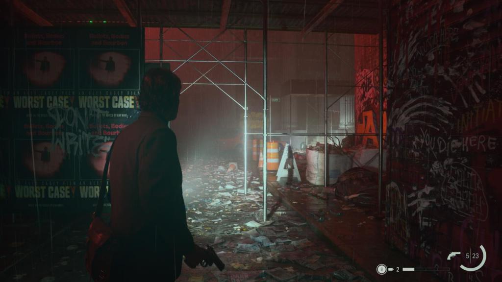 War der erste Teil noch ein recht lineares Action-Adventure mit Horror-Elementen, so geht die Fortsetzung gleich ein paar Schritte weiter und ist nicht nur ein stellenweise ziemlich gruseliges Survival-Horror-Spiel, das vom Gameplay her an „Resident Evil 2 Remake“ angelehnt ist, aber gleichzeitig viele Elemente eines klassischen Detektivspiels beinhaltet. So findet man zwar insgesamt weniger Action, als beim Survival Horror-Urvater, doch bekommt stattdessen mehr Stimmung und abgefahrene Ideen, angesiedelt in einer semi-offenen Spielwelt, verteilt über mehrere Ebenen der Realität und zwei Protagonisten. Denn wir steuern nicht nur Alan, sondern auch Saga in ihren eigenen, jedoch miteinander verwobenen Story. Was beide Protagonisten eint ist, dass wir gegen die bösartigen Monster, genannt „Taken“ nicht nur mit Feuerkraft, sondern auch Licht in den Kampf ziehen, da wir die Gegner nur verletzen können, wenn wir ihre Schilde mit unserer Taschenlampe wegbrennen. Im Gegensatz zum Vorgänger stehen nun gleich mehrere unterschiedliche Waffen, wie Pistole, Schrotflinte, oder sogar eine Armbrust zur Verfügung, die sich jeweils auch verbessern lassen.