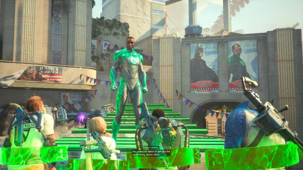 Und da die Helden bald alle unter Brainiac’s Kontrolle sind, wendet man sich an die, die noch übrig sind: Die Schurken, genannt Task Force X, oder auch Suicide Squad, bestehend aus Harley Quinn, Deadshot, Captain Boomerang und King Shark, die im Auftrag von Amanda Waller agieren. Man muss der Vollständigkeit halber sagen, dass die Schurken das nicht aus reiner Menschenfreundlichkeit machen, sondern weil Waller sie mit implantierten Bomben erpresst, jedoch der Zweck heiligt bekanntlich die Mittel und die Justice League tötet sich auch nicht von selbst… – Denn der Titel des Spiels ist Programm, denn auch wenn Brainiac der eigentliche Antagonist ist, so sind die Mitglieder der Justice League die unmittelbare Bedrohung und die einzige Lösung der Situation ist gleichzeitig auch die drastische.